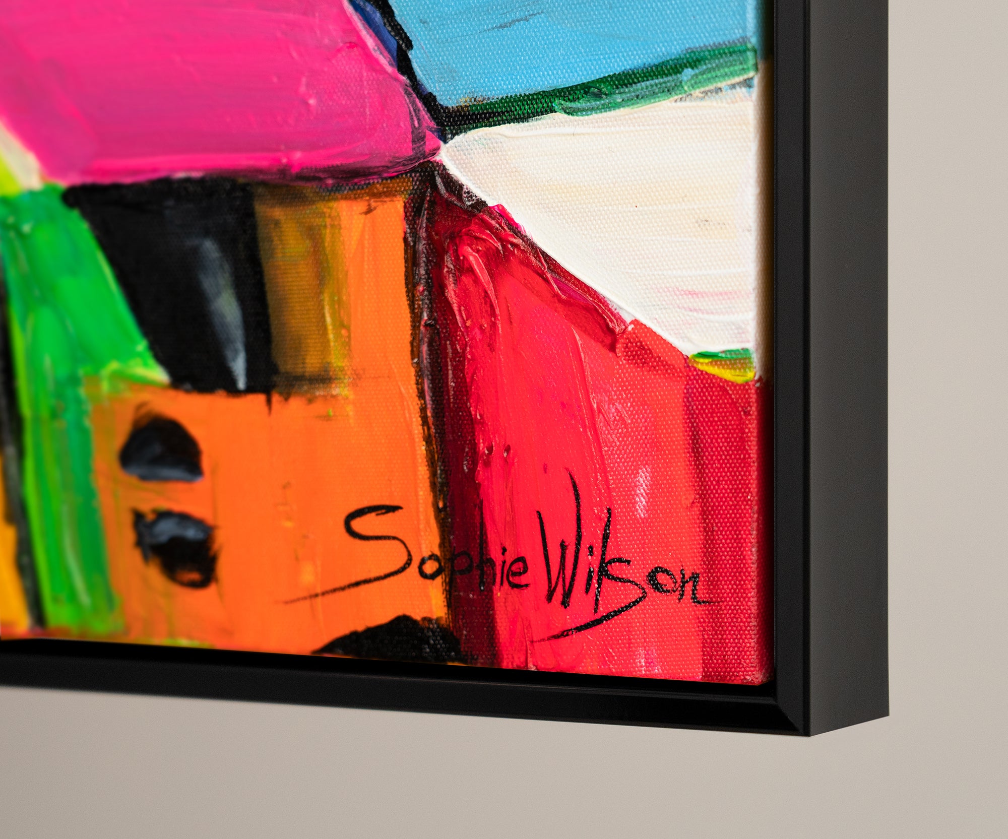 Descubre la vitalidad del arte urbano con esta exclusiva pintura acrílica hecha a mano, que presenta una interpretación abstracta de casas coloridas. Esta obra no solo es un punto de atracción, sino también una representación de la libertad artística y creatividad. La pintura está realizada en lienzo de alta calidad y cuidadosamente presentada en un marco adecuado que resalta la obra y la hace lista para adornar tu pared.