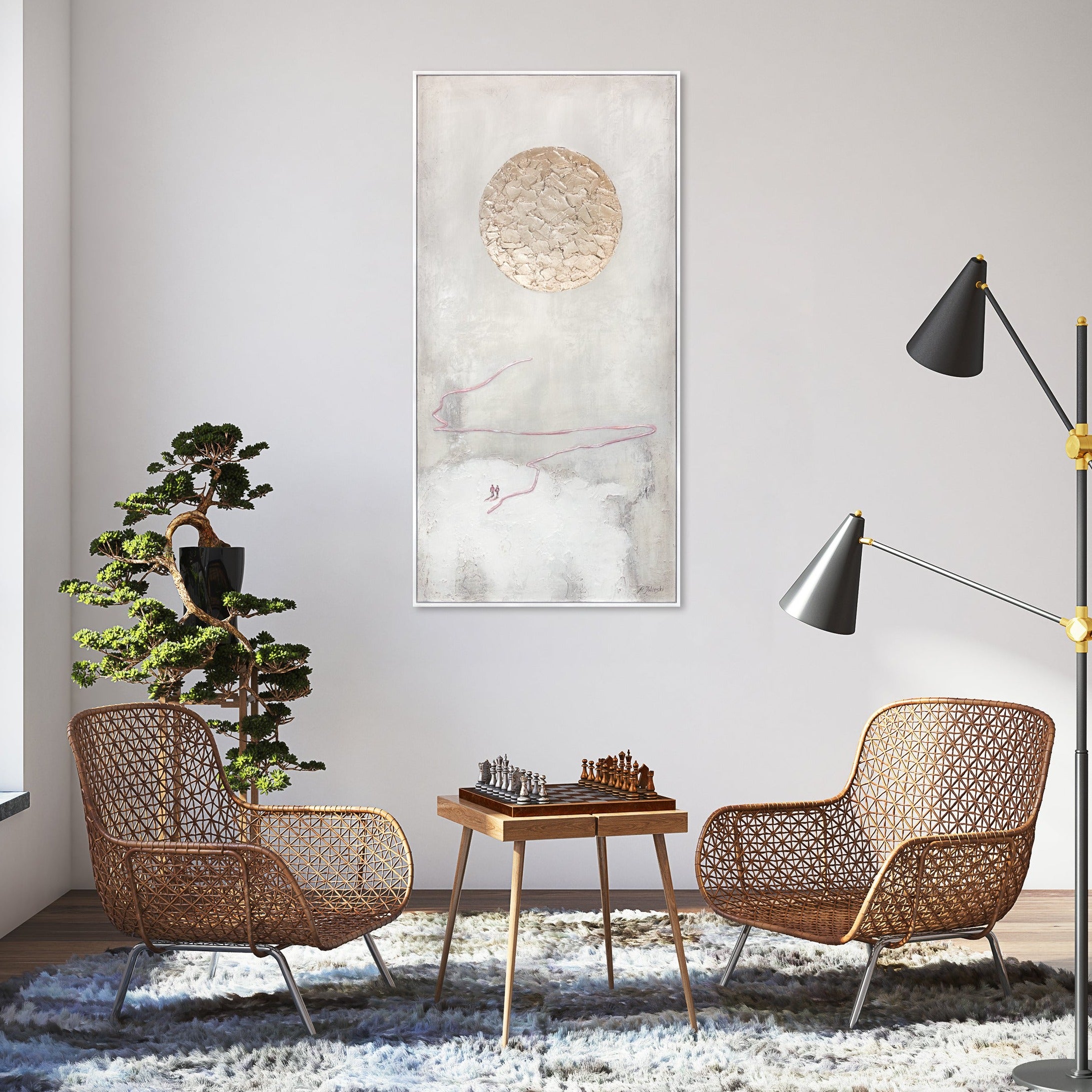 • Cuadro Pintado a Mano "El Camino al Sol" | Pintura Abstracta Moderna con Marco