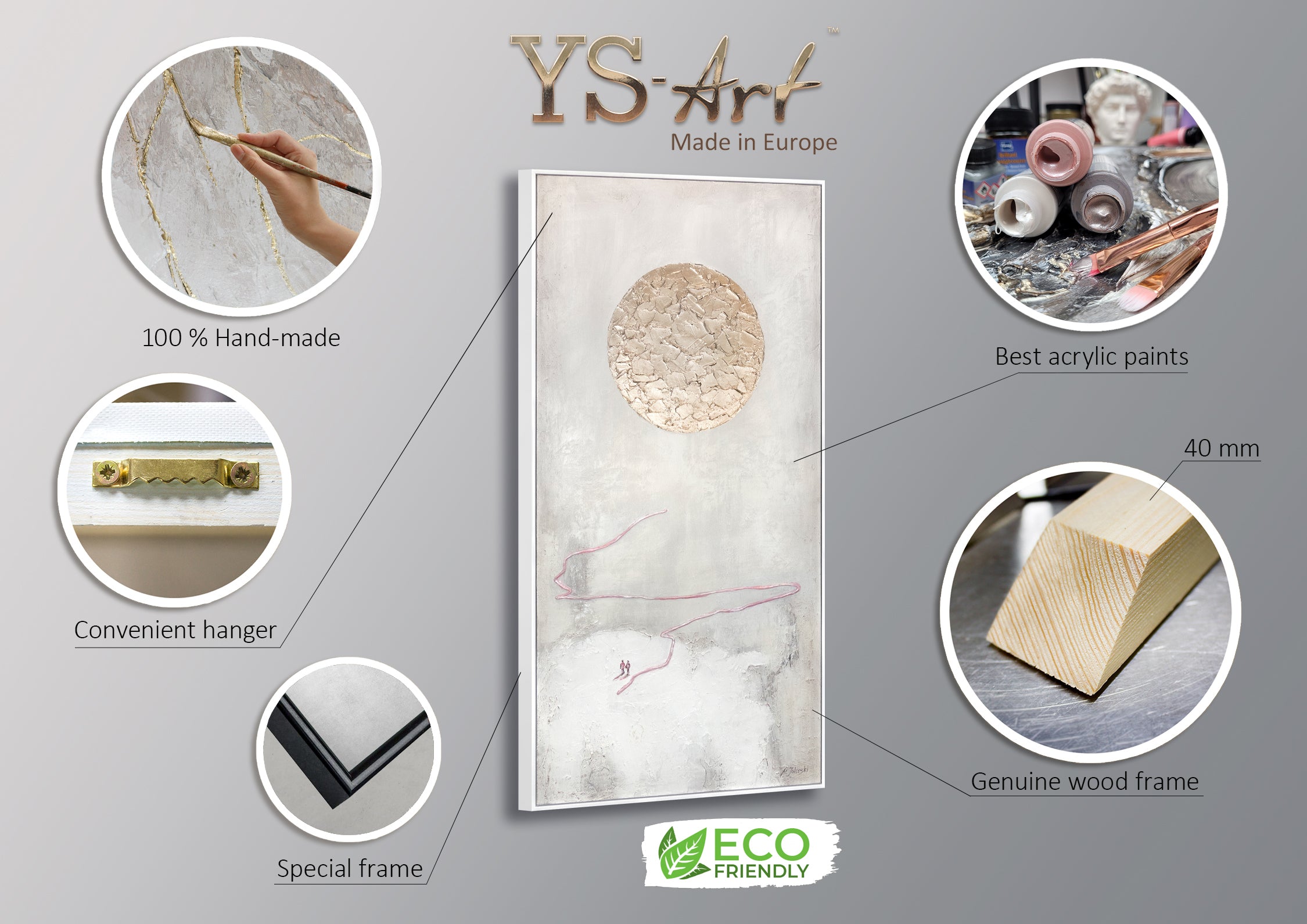 Para nuestros cuadros abstractos pintados a mano sobre lienzo, solo utilizamos materiales de alta calidad que cumplen con los estándares internacionales. Nuestros artistas también pueden pintar cada obra en otros tamaños bajo solicitud.