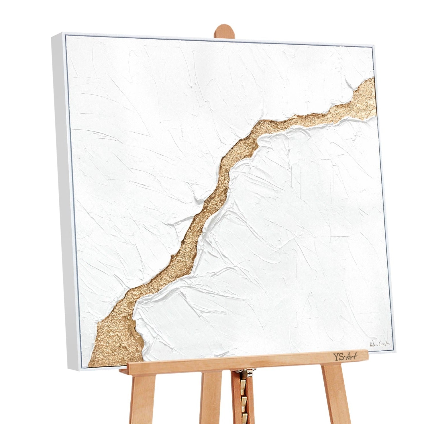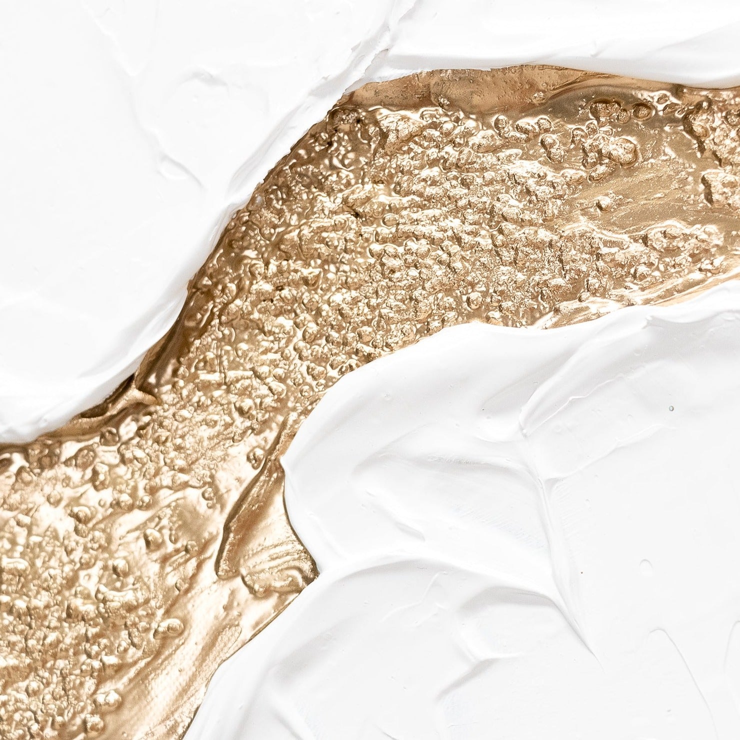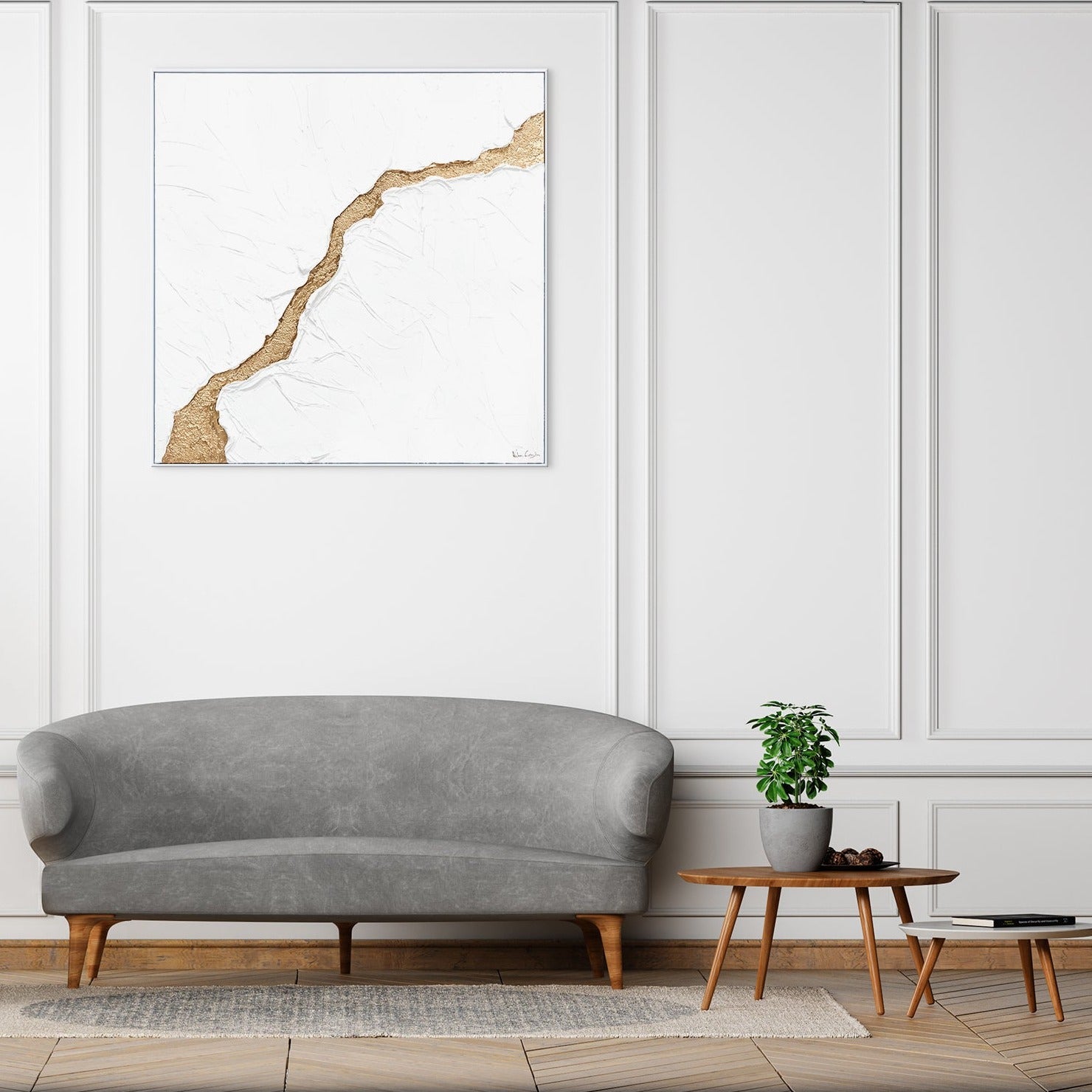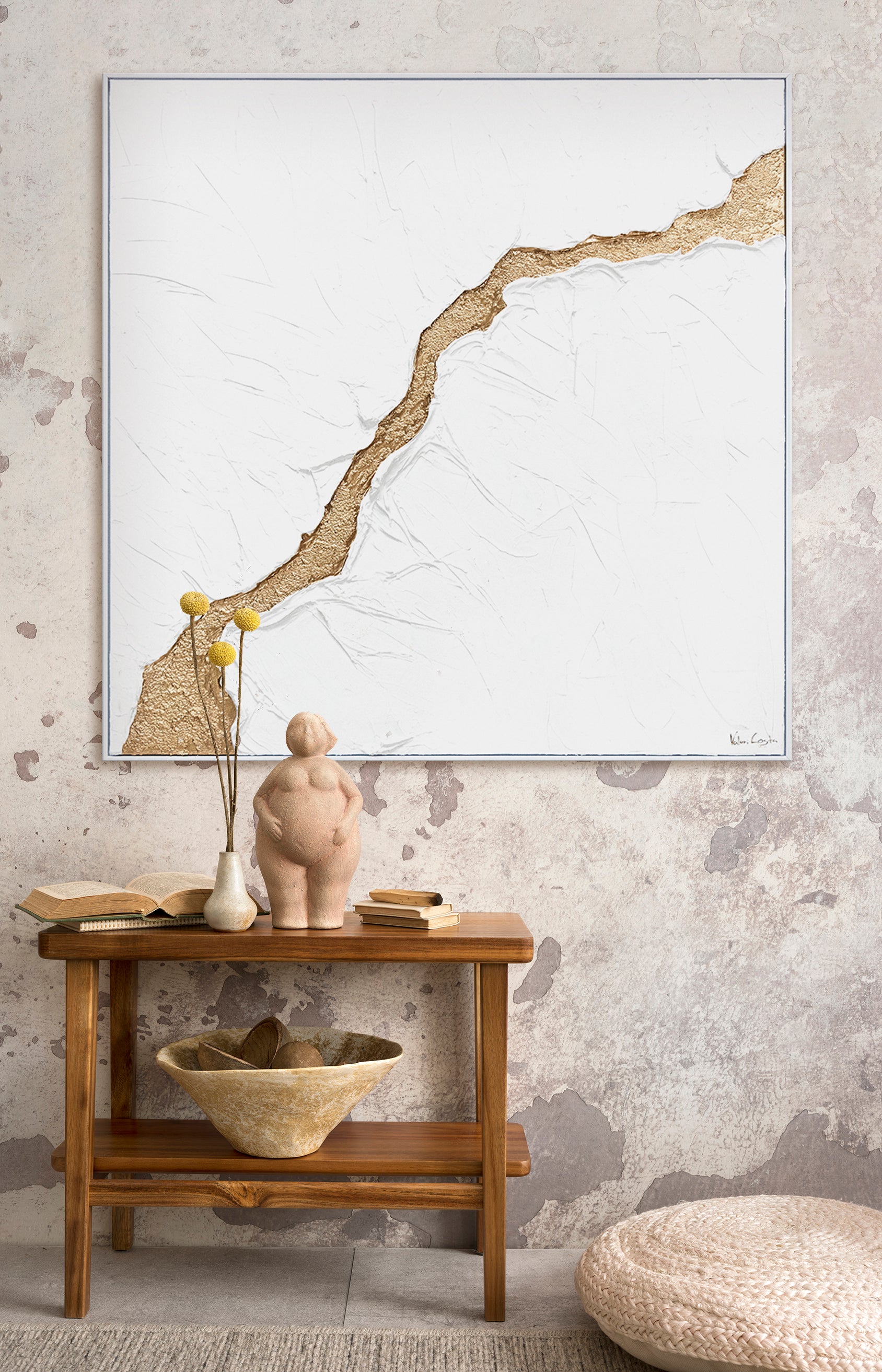 Nos aseguramos de que cada cuadro llegue en perfectas condiciones, utilizando solo materiales de alta calidad y embalando cuidadosamente cada obra. - La textura, la sofisticación de las líneas y el uso de hoja de oro hacen de esta obra una pieza fascinante. Este arte será el acento más brillante en cualquier espacio moderno, ya sea en tu hogar o oficina. Un elegante marco blanco le otorga la elegancia necesaria a la obra.