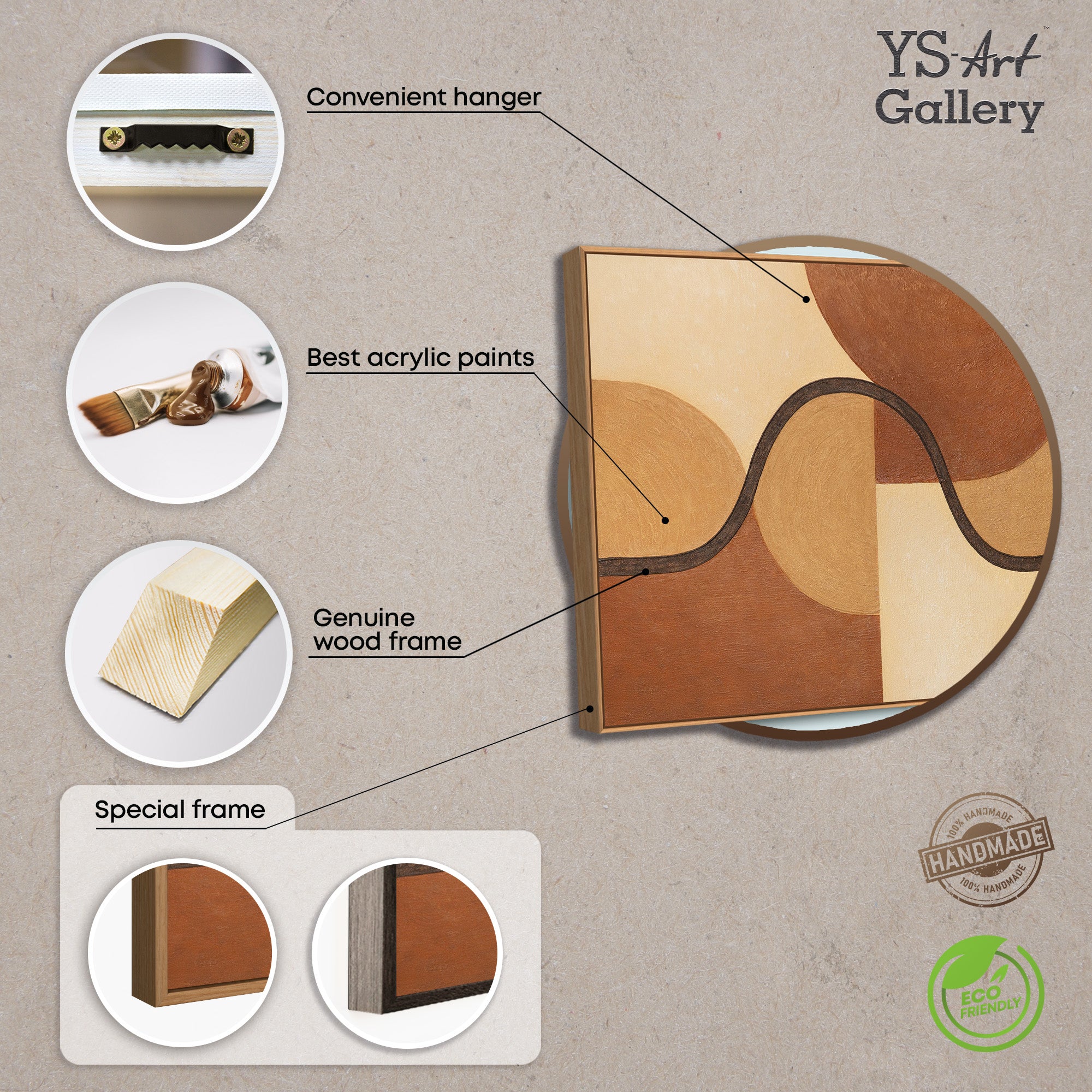 - Colores: Beige, ocre, marrón, crema