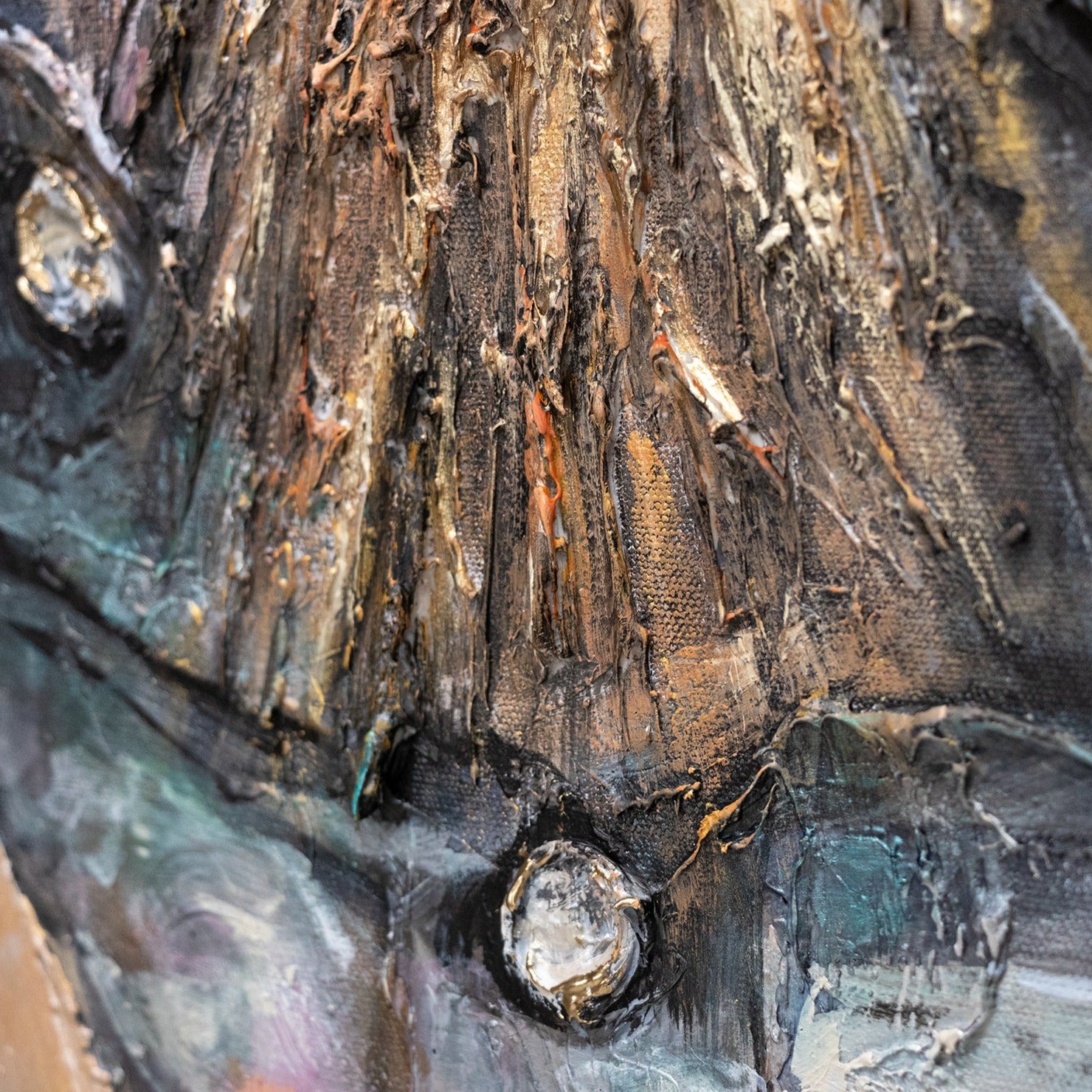 Esta extraordinaria abstracción luminosa marcará el tono en su interior. La pintura resalta su individualidad y su gusto especial. La textura y el juego de colores de esta obra se complementan perfectamente.
