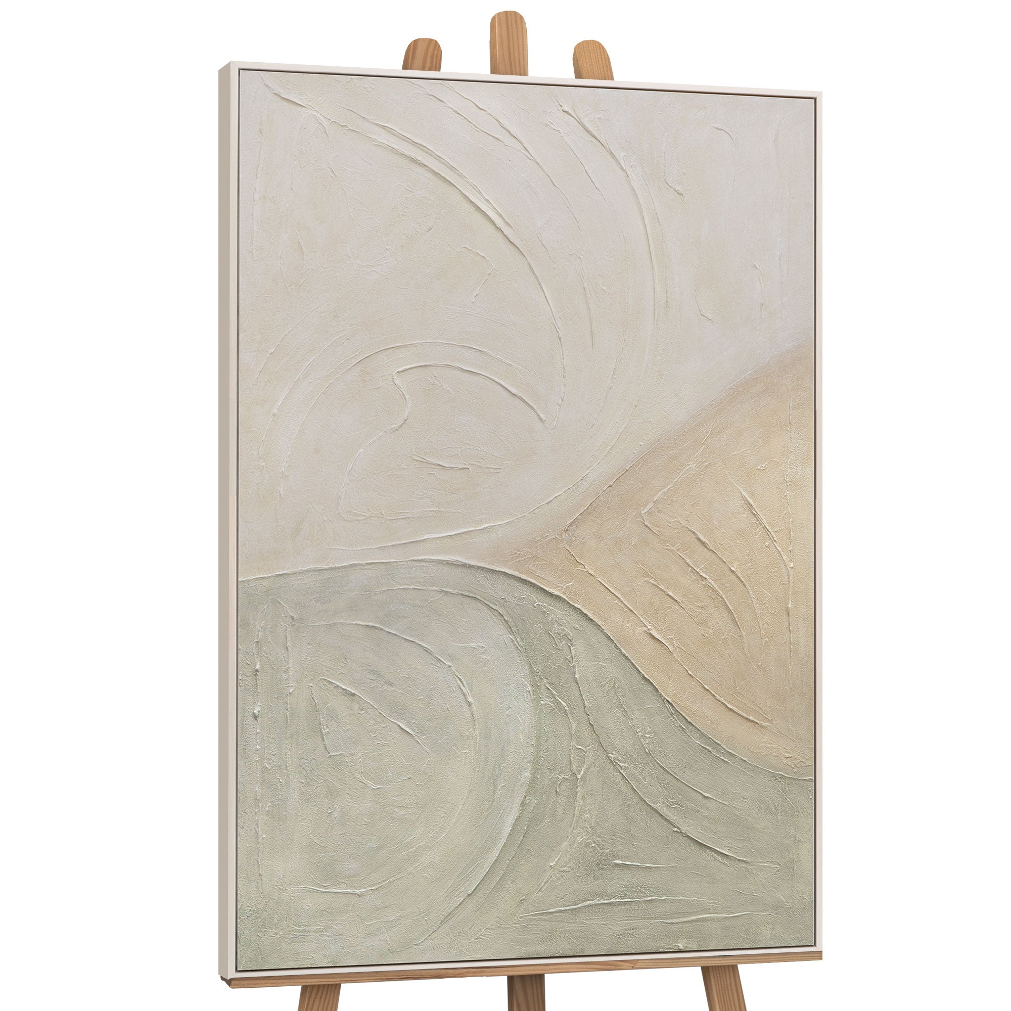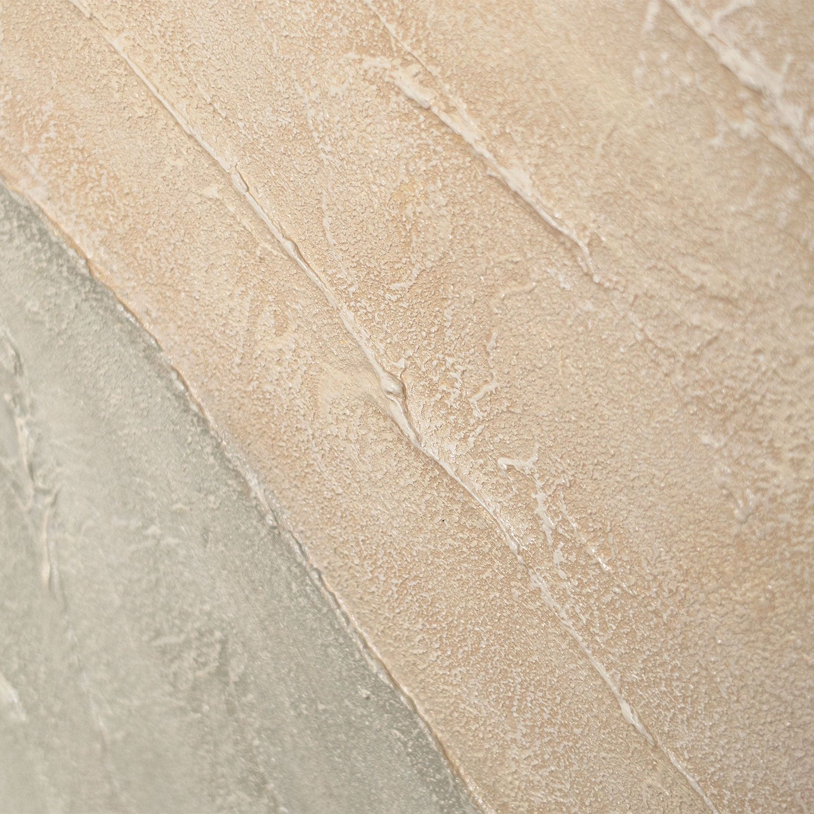 «Huellas de lluvia» plasma la serena belleza de las texturas naturales sobre lienzo. Líneas delicadas y suaves pinceladas de beige y verde se funden en una composición armoniosa que evoca arroyos y estelas de viento. La sutil textura crea profundidad e invita a la contemplación.