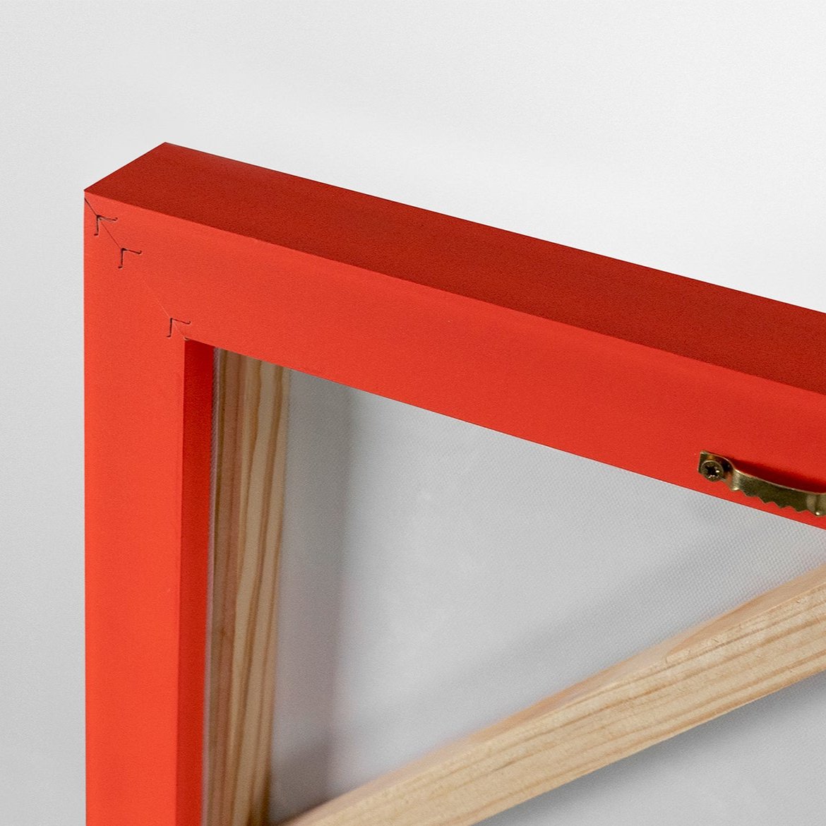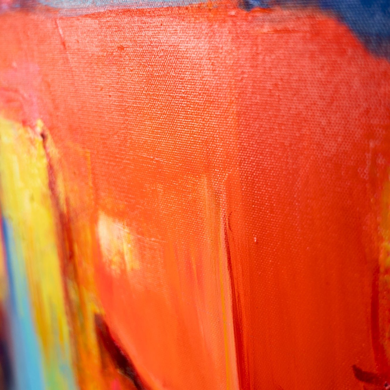 • Nahaufnahme der Pinseltextur mit warmen Rottönen