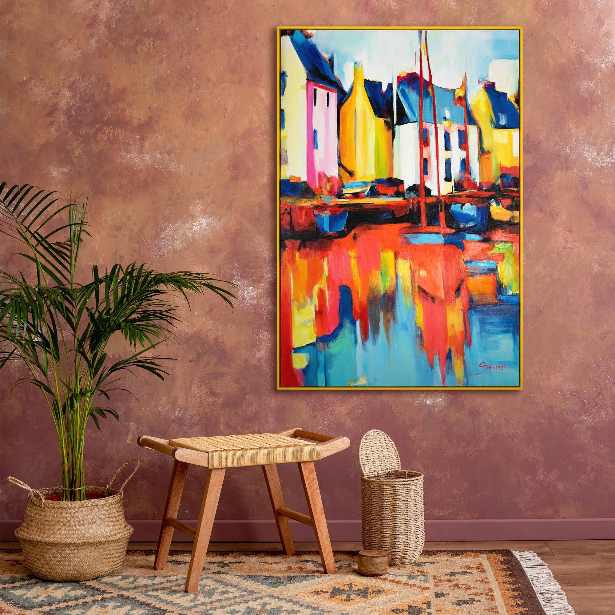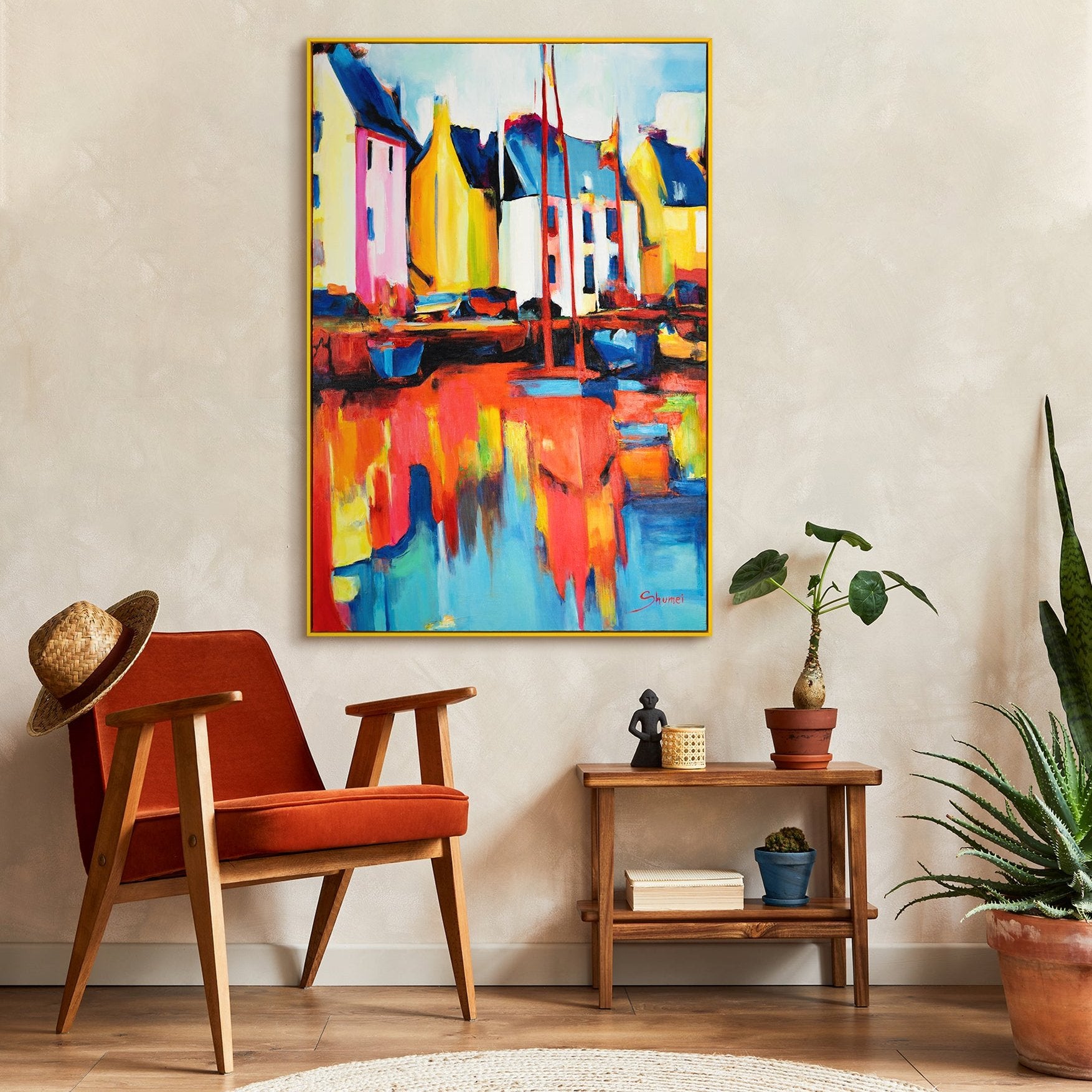 • Farbige Häuserfassaden und Segelmasten im Detail