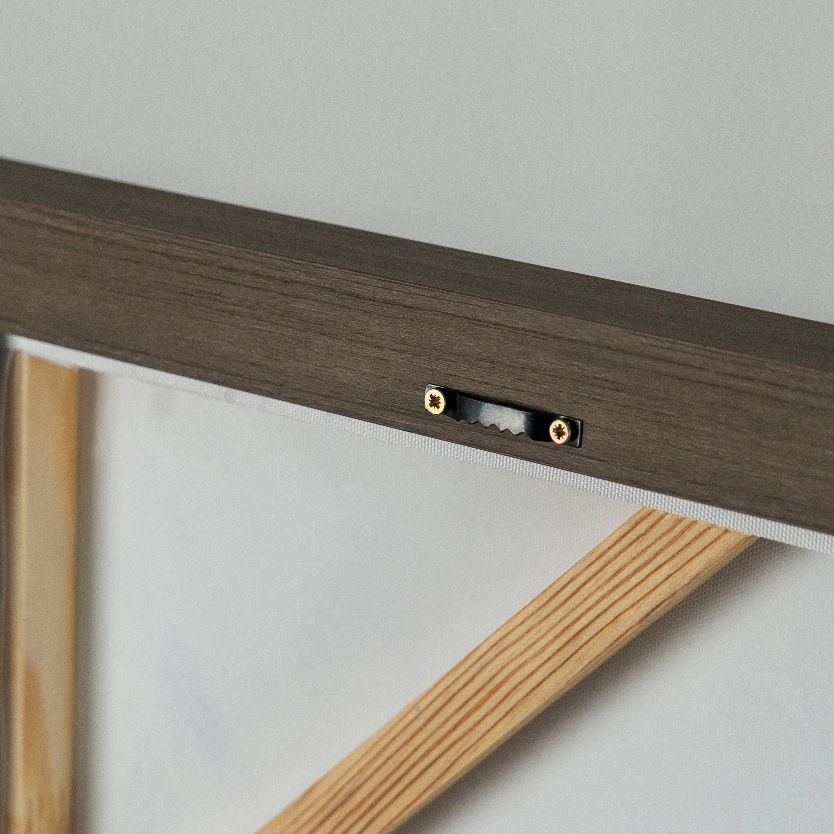 - El bastidor ya está equipado con dos clips metálicos para que puedas colgar el cuadro directamente después de recibirlo.
