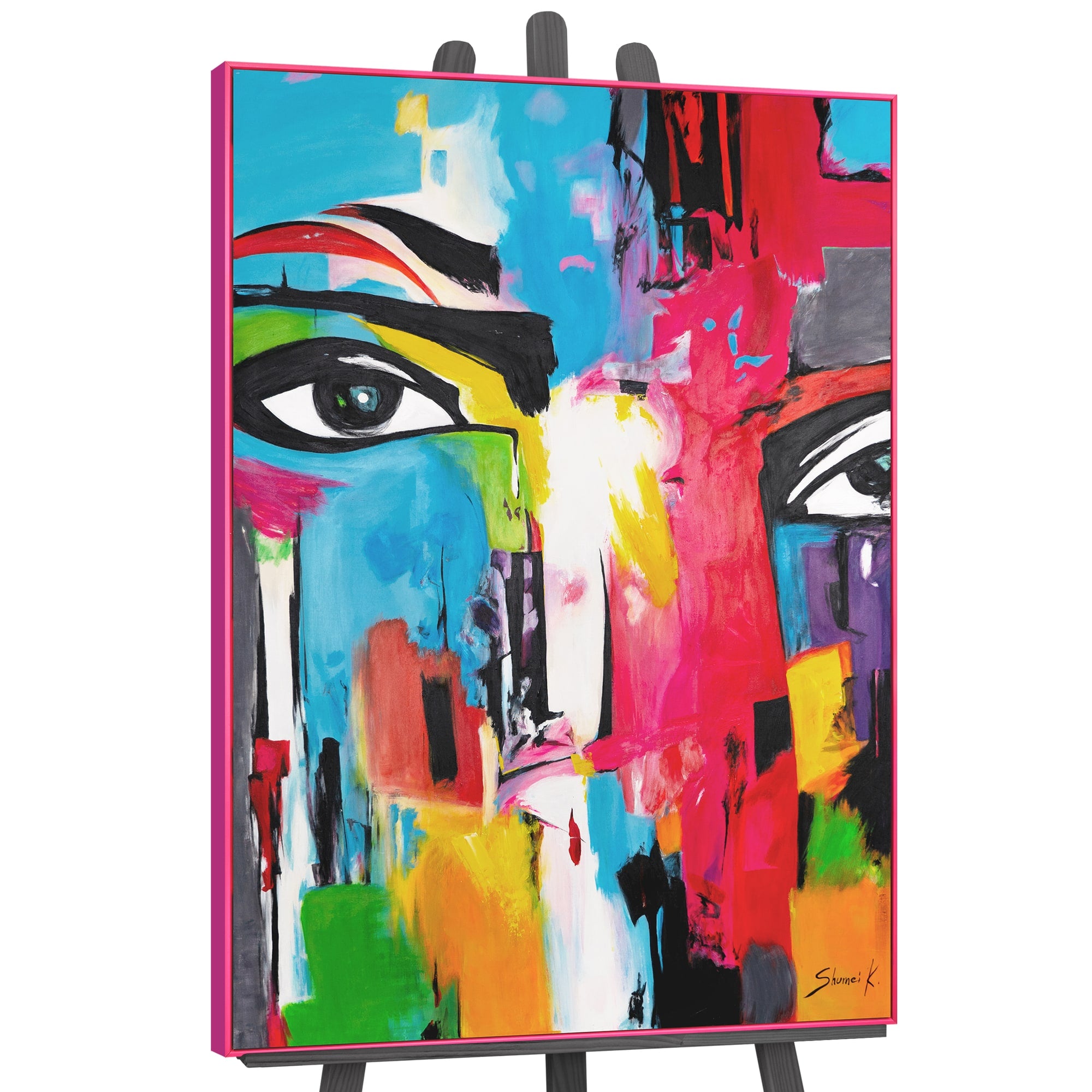 Esta obra moderna y abstracta ha sido completamente realizada a mano. Los colores vibrantes y las líneas fuertes le otorgan una intensa expresión al rostro, enriqueciendo cualquier habitación. El marco es personalizable según su preferencia, para que encaje perfectamente con su concepto de decoración. Con nuestro envío gratuito, recibirá esta obra de arte en solo 1-3 días, y podrá exhibirla de inmediato en su hogar.