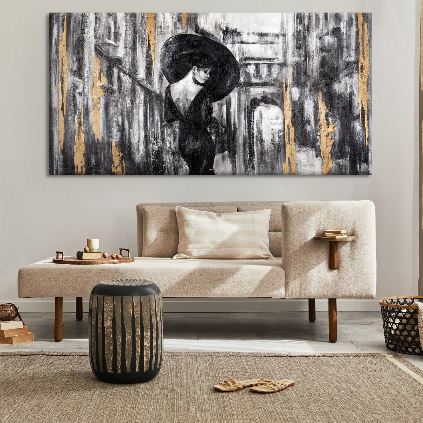 • blattgold auf acrylbild auftragen Wandbild mit Frau in stilvoller Interieurszene