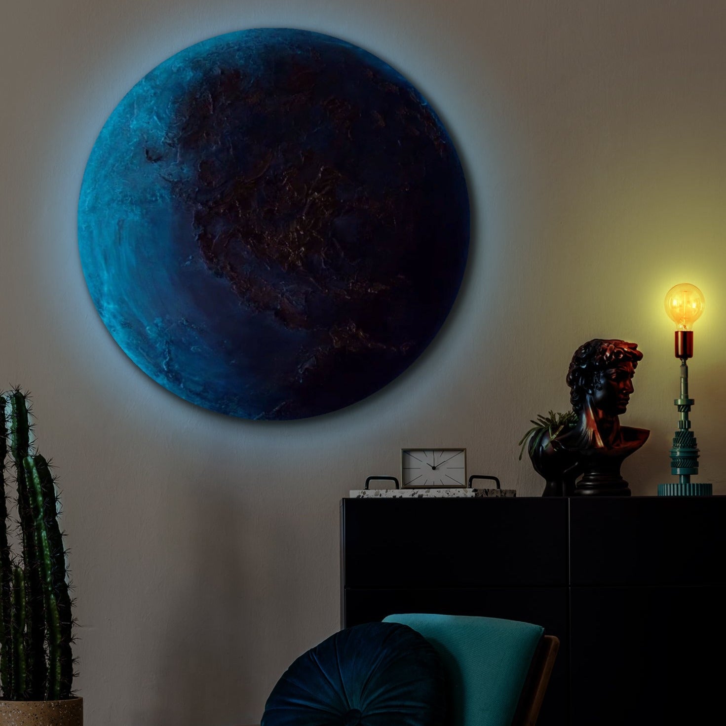 1. Durante el día, esta pintura estructurada presenta una paleta de colores agradable, y por la noche, emite un suave resplandor que proporciona un ambiente único de confort a su espacio. Así que no solo obtiene una pintura, sino también una iluminación suave y colorida para su interior.
