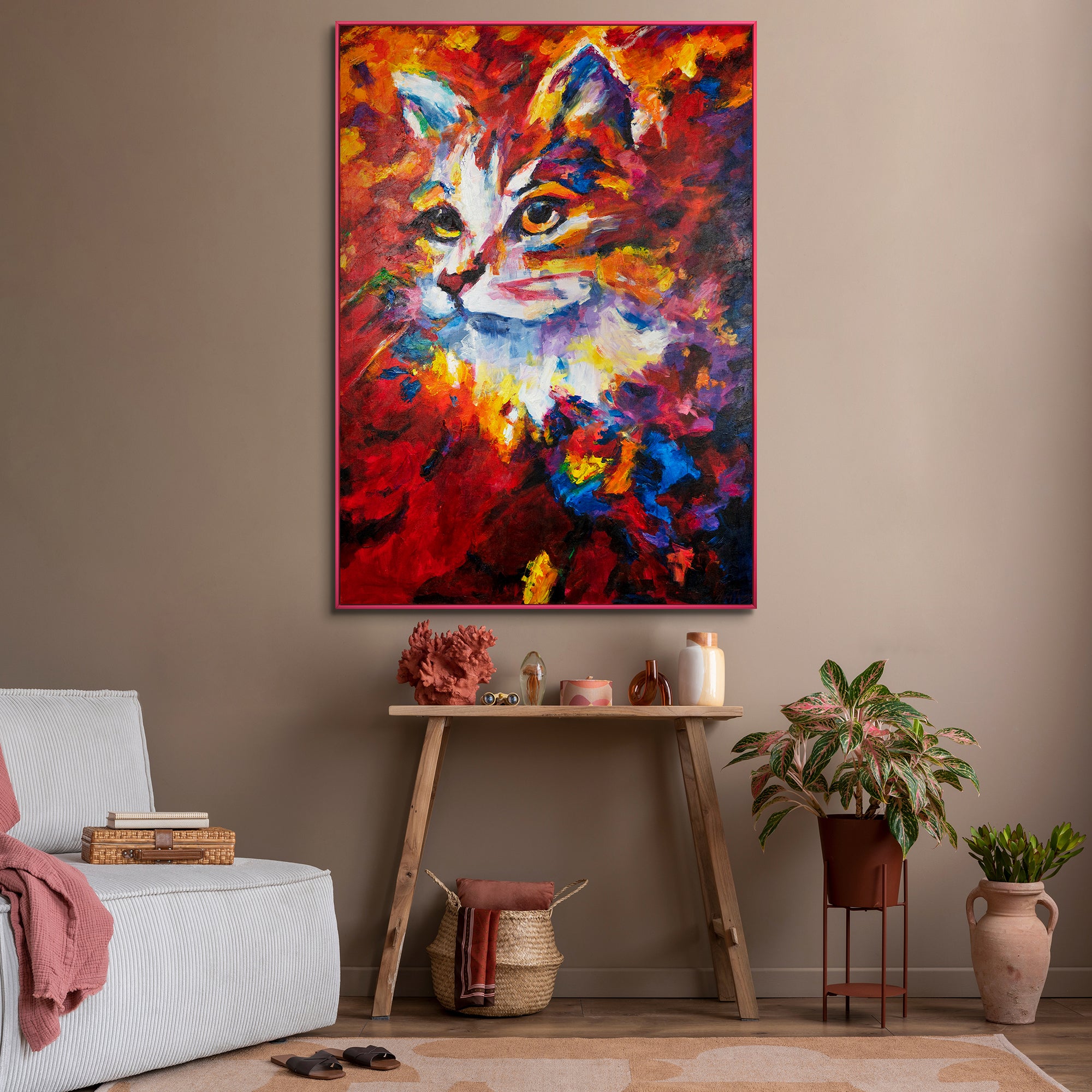 Sumérgete en el mundo del arte moderno con nuestra exclusiva pintura acrílica de un gato. Cada obra de esta serie es una creación única, pintada a mano con colores acrílicos de alta calidad sobre lienzo. Los colores vibrantes y la impresionante textura le otorgan una dimensión realista al arte, cautivando a cada espectador. El marco sólido que rodea la pintura resalta la belleza de la obra y la hace lista para colgar en tu hogar o oficina.