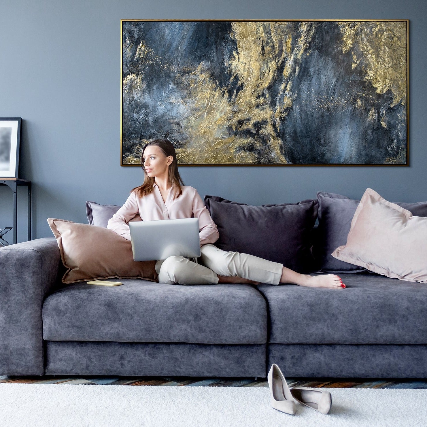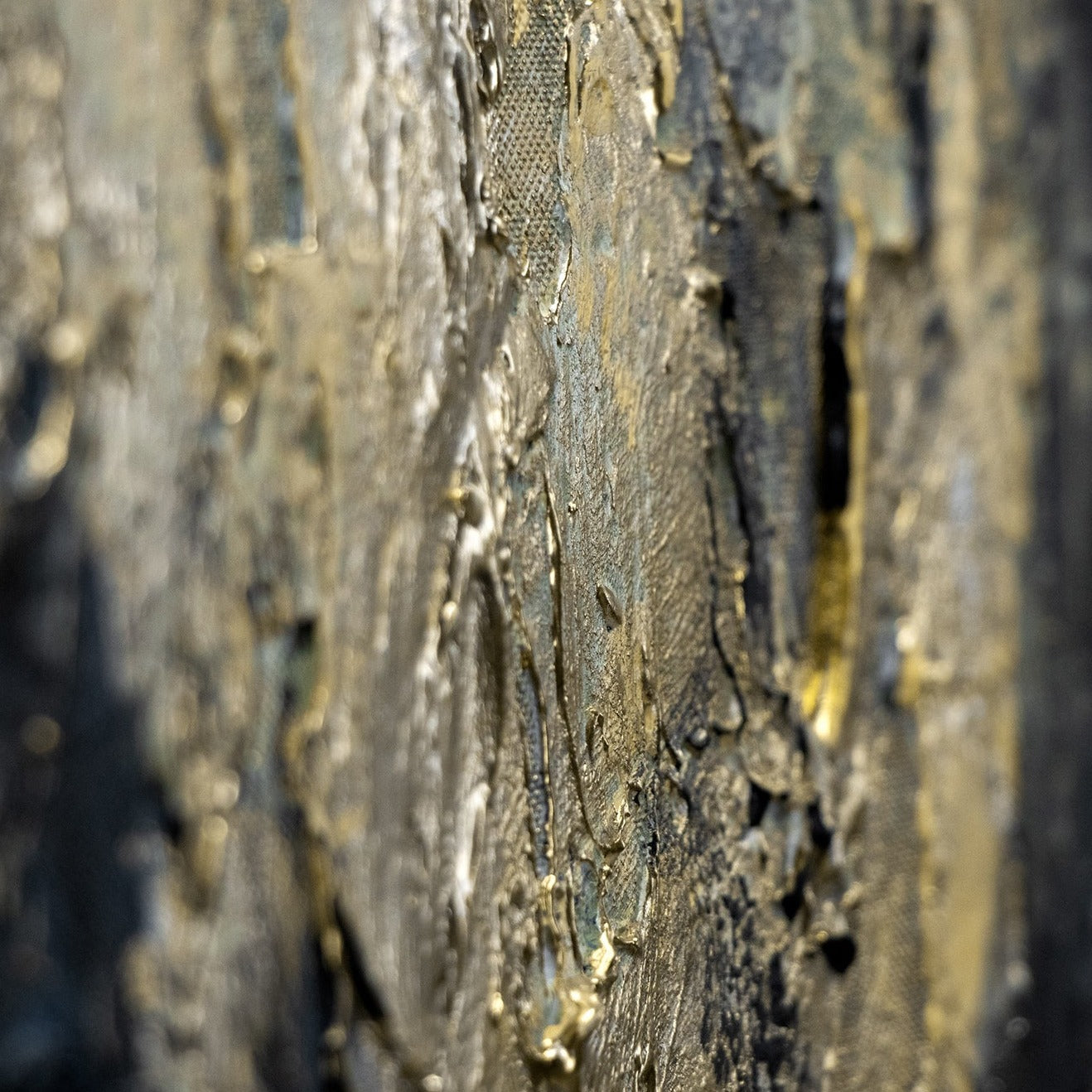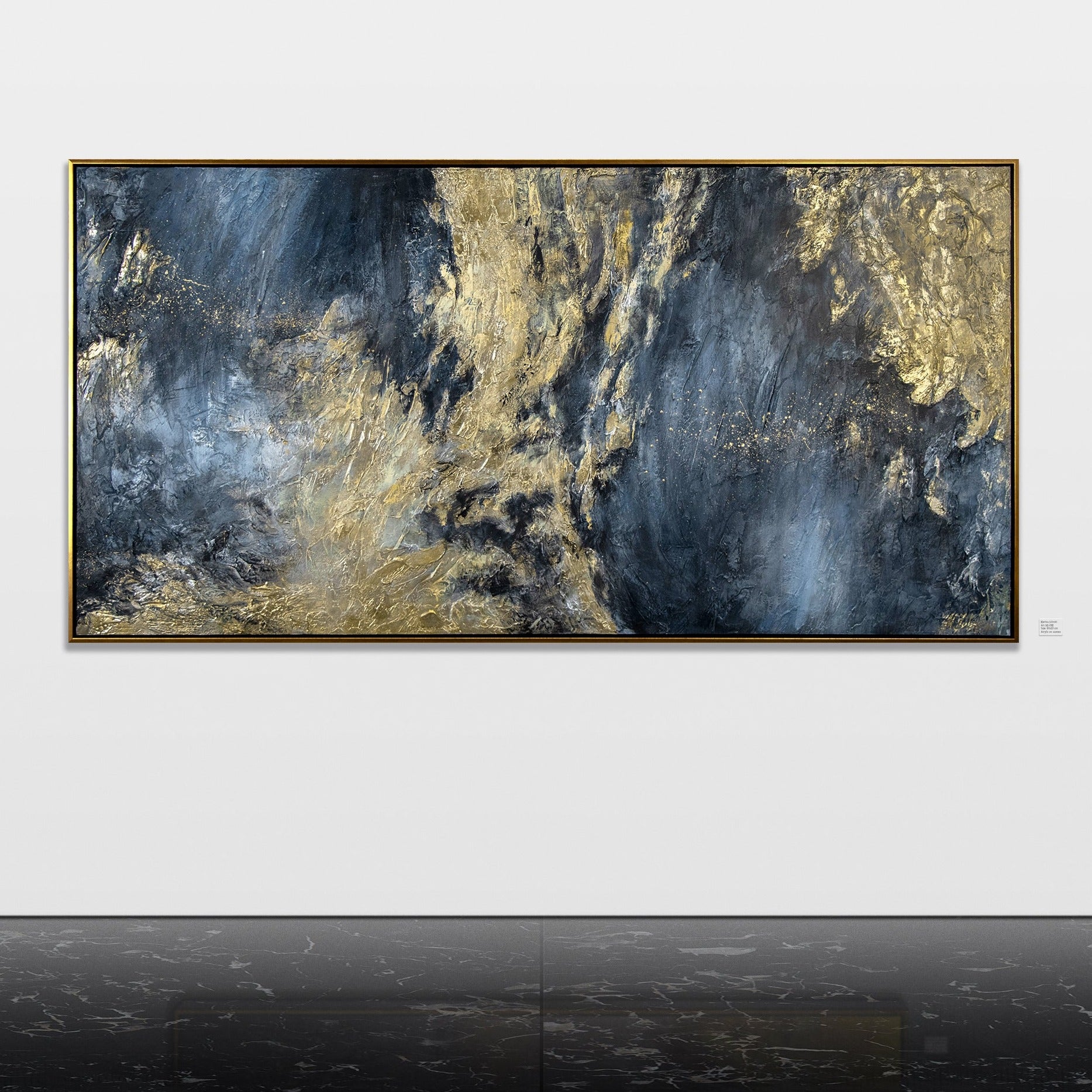 Cuadros modernos con marco dorado "Reflejos II", pintados a mano sobre lien