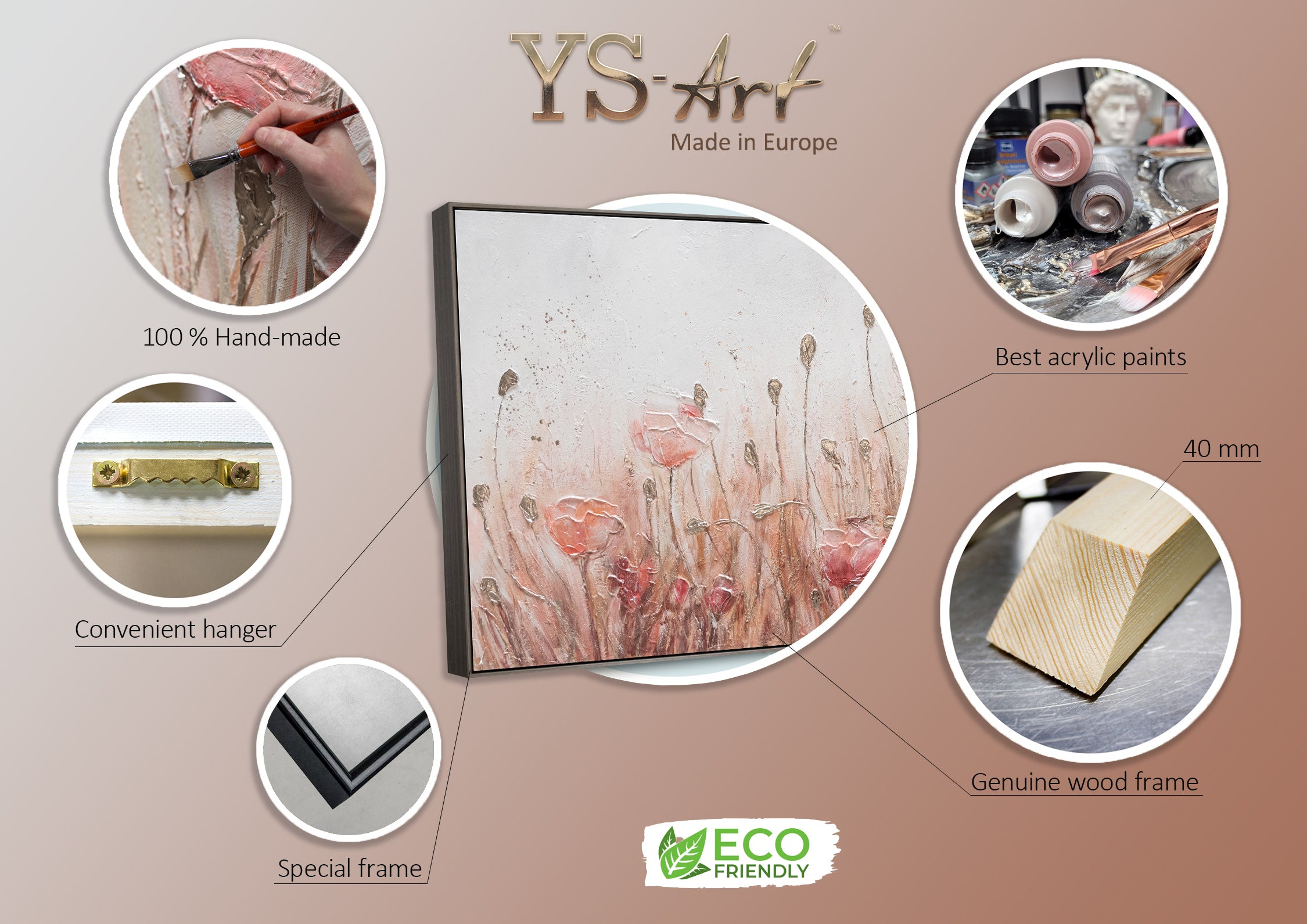 El simbolismo de las amapolas varía, algunas personas las consideran un símbolo de belleza femenina, en la antigüedad se asociaban con la muerte, pero en la actualidad esta flor está vinculada solo a emociones positivas: juventud, encanto y belleza femenina. Esta pintura influye positivamente en la atmósfera de su hogar o oficina, llenándolo de luz y calor. El cuadro está pintado con colores acrílicos de alta calidad.