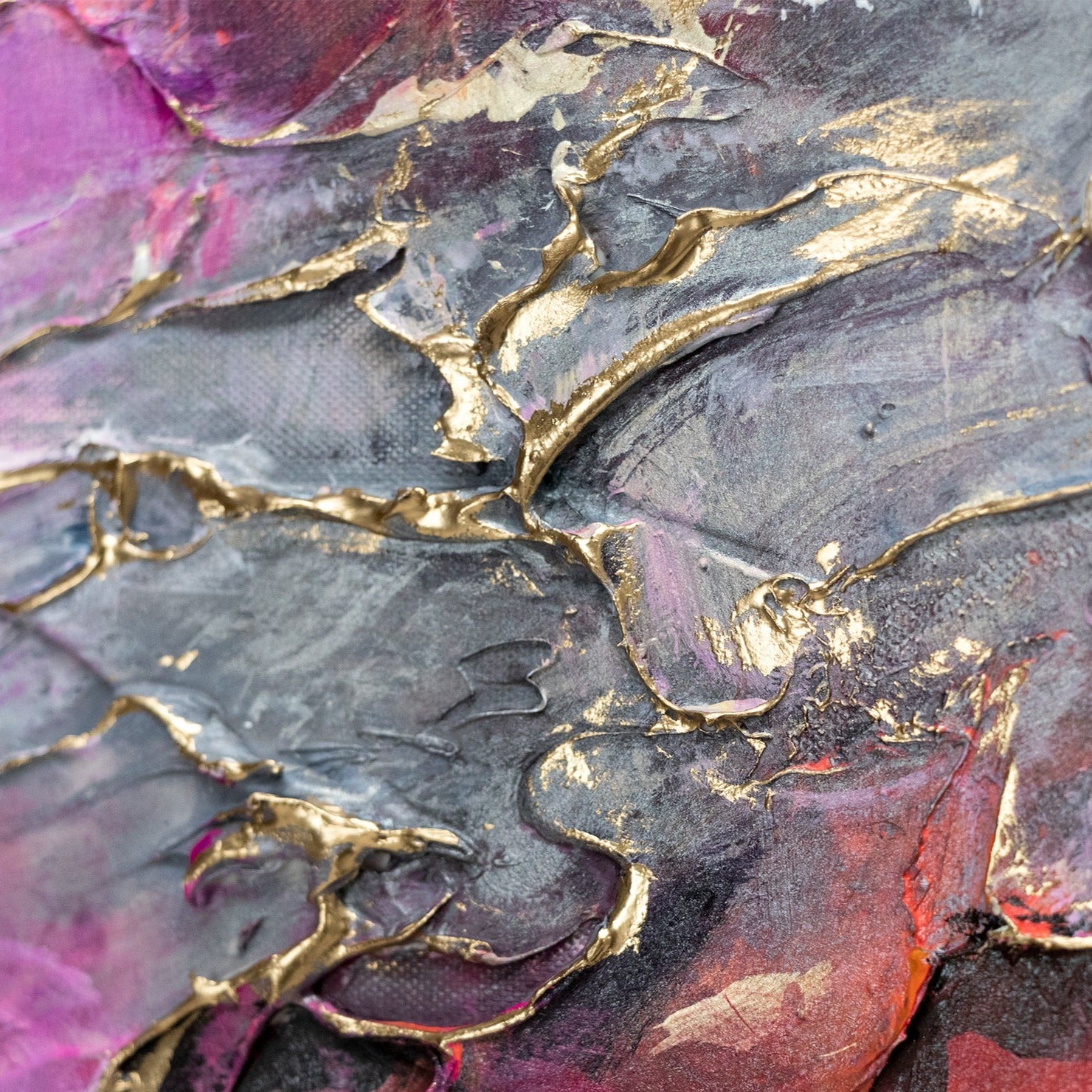 • Nahaufnahme strukturierter Textur mit goldenen und pinken Akzenten
