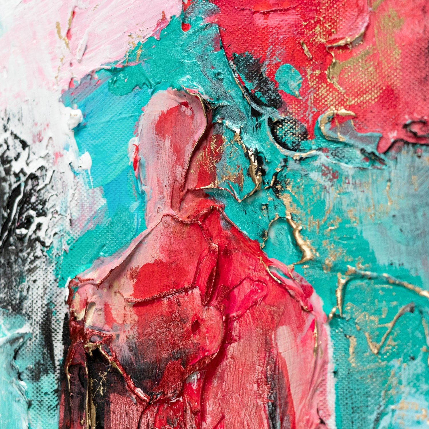 Erleben Sie ein einzigartiges Gemälde voller Bewegung und Atmosphäre: „Im Park“ zeigt eine abstrakte Szene mit menschlichen Figuren in einem farbenfrohen Park. Die kontrastreiche Komposition aus kräftigem Rot, Türkis, Gold und Beige erzeugt ein intensives visuelles Erlebnis. Die reliefartige Struktur verleiht dem Bild eine lebendige Tiefe und macht jede Figur zu einem plastischen Ausdruck von Bewegung und Stimmung.