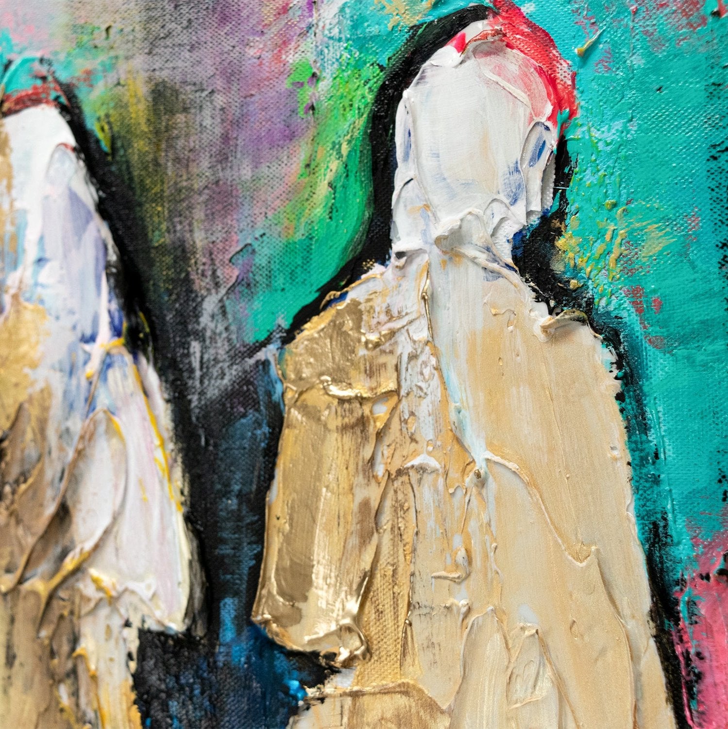Handgemaltes Gemälde „Im Park“ – Abstrakte Figurenszene auf Leinwand