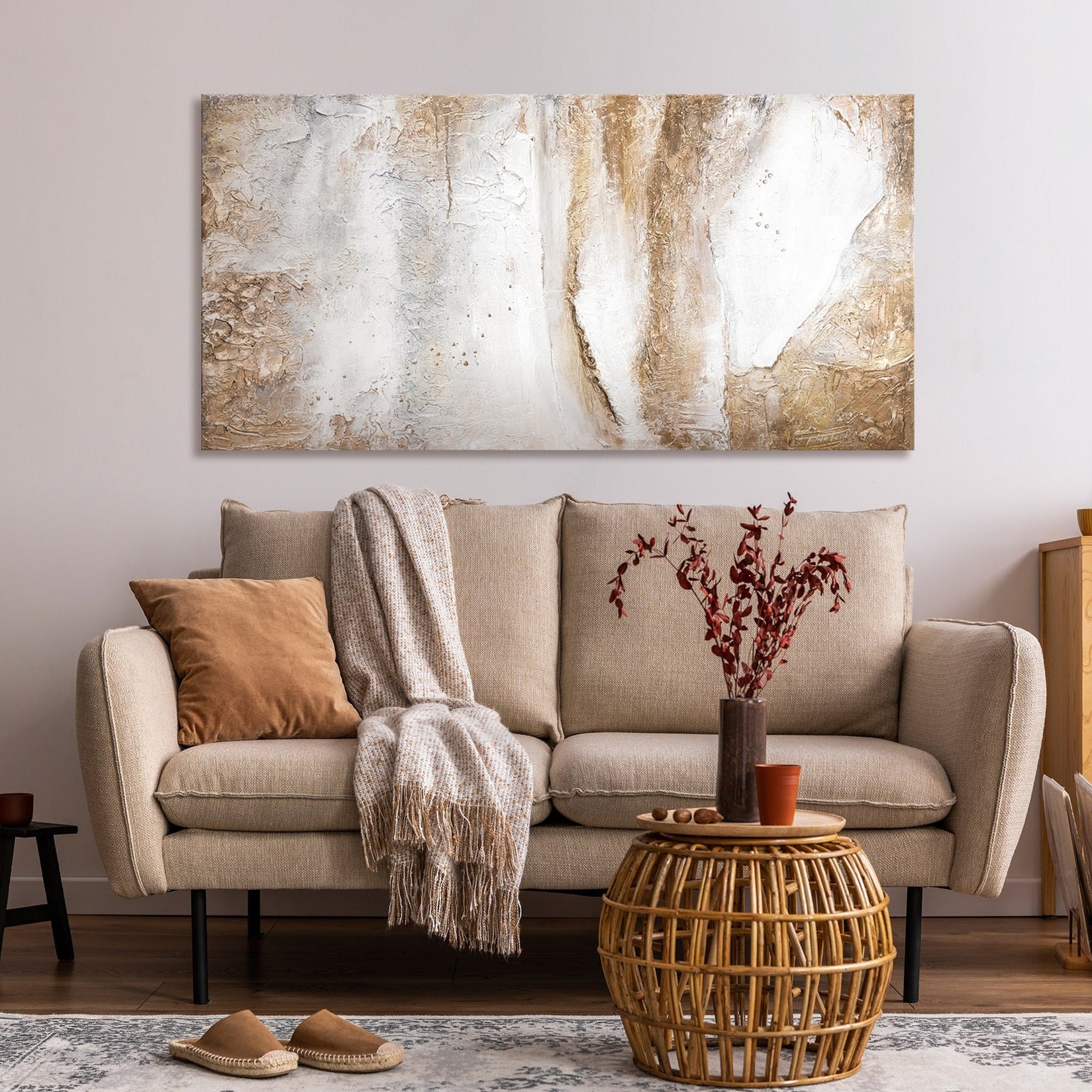 - Materiales: Acrílico, lienzo, bastidor de madera natural.