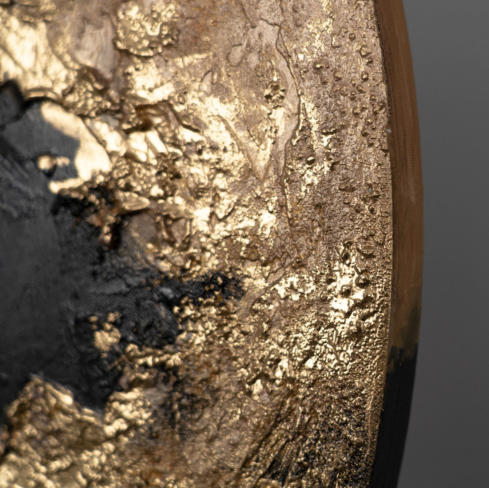 Dieses handgemalte Kunstwerk ist auf runder Leinwand gearbeitet und in verschiedenen Größen erhältlich. Ideal für moderne, minimalistische oder luxuriöse Einrichtungen – ein Eyecatcher mit Tiefe und Charakter.