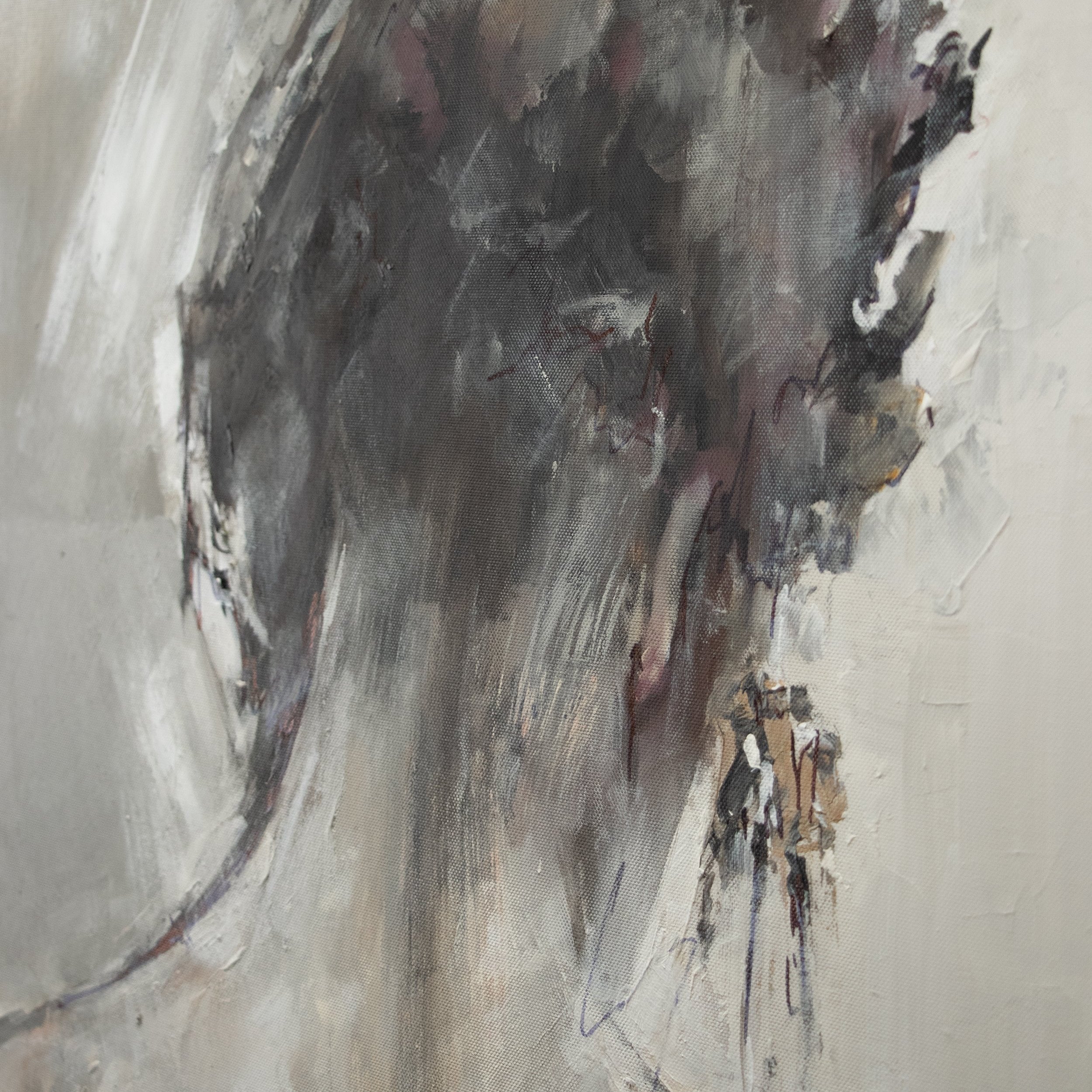 • Nahaufnahme des Kopfs einer Frau auf strukturiertem Gemälde