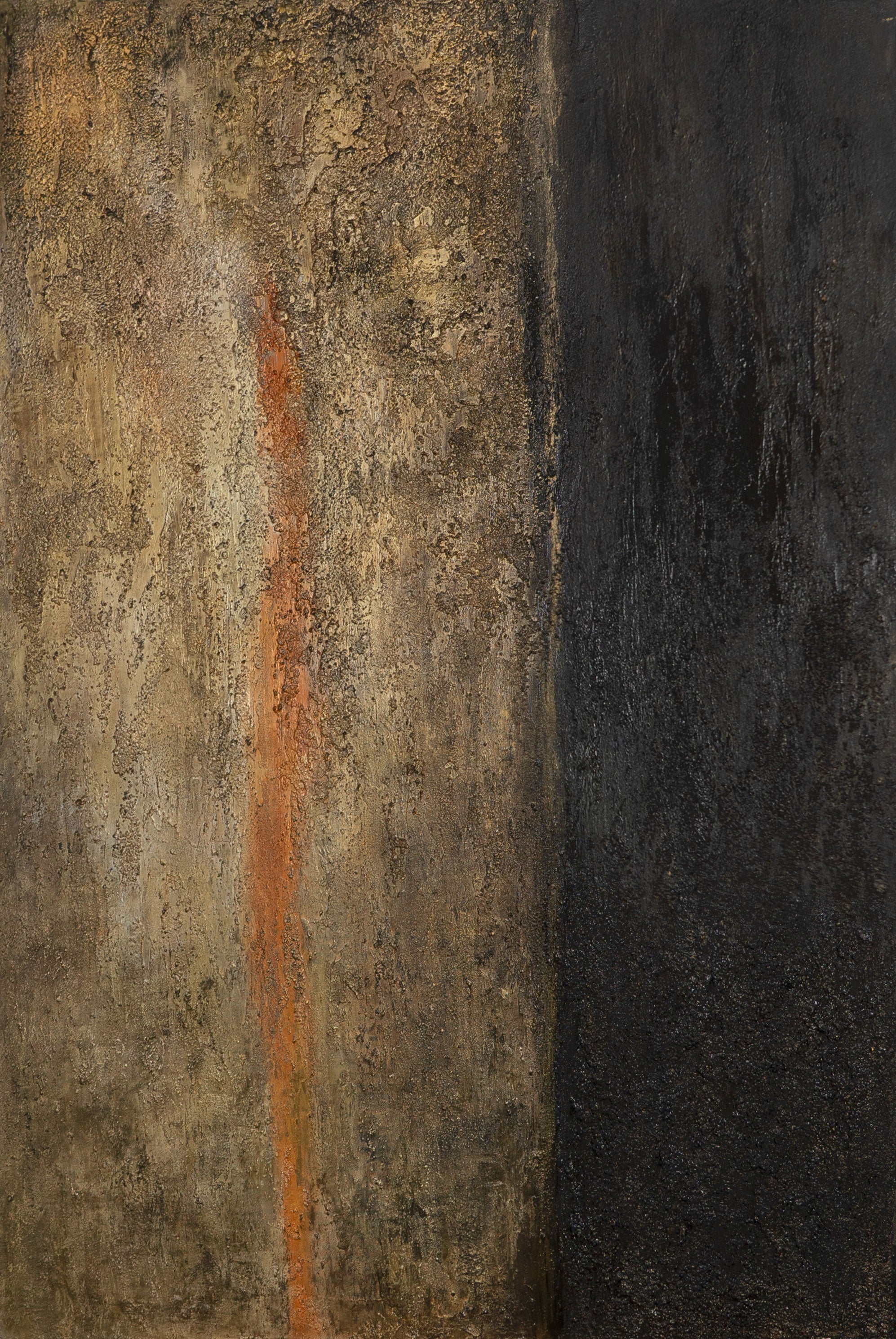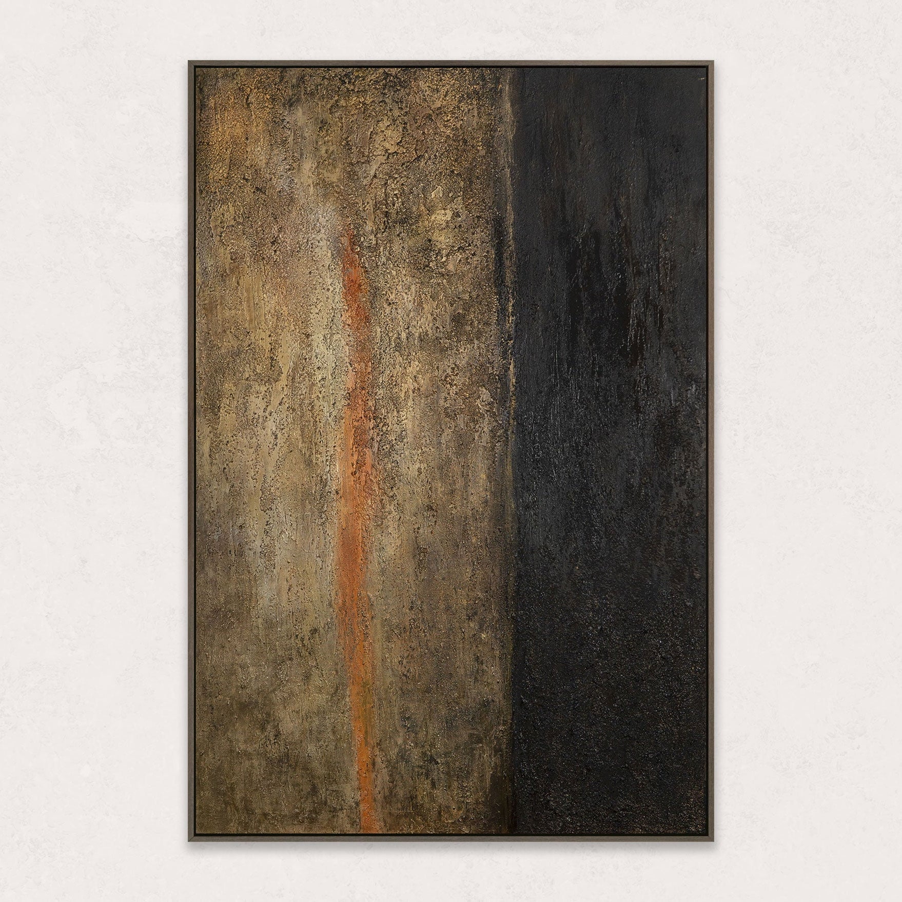 «Profundidad del Tiempo» es una impactante pintura acrílica pintada a mano que cautiva con sus colores de alto contraste y su intensa textura. La combinación de negro profundo, marrones cálidos, dorado elegante y un sutil acento rojo crea un efecto místico y sofisticado. La superficie en relieve le otorga profundidad y expresividad.