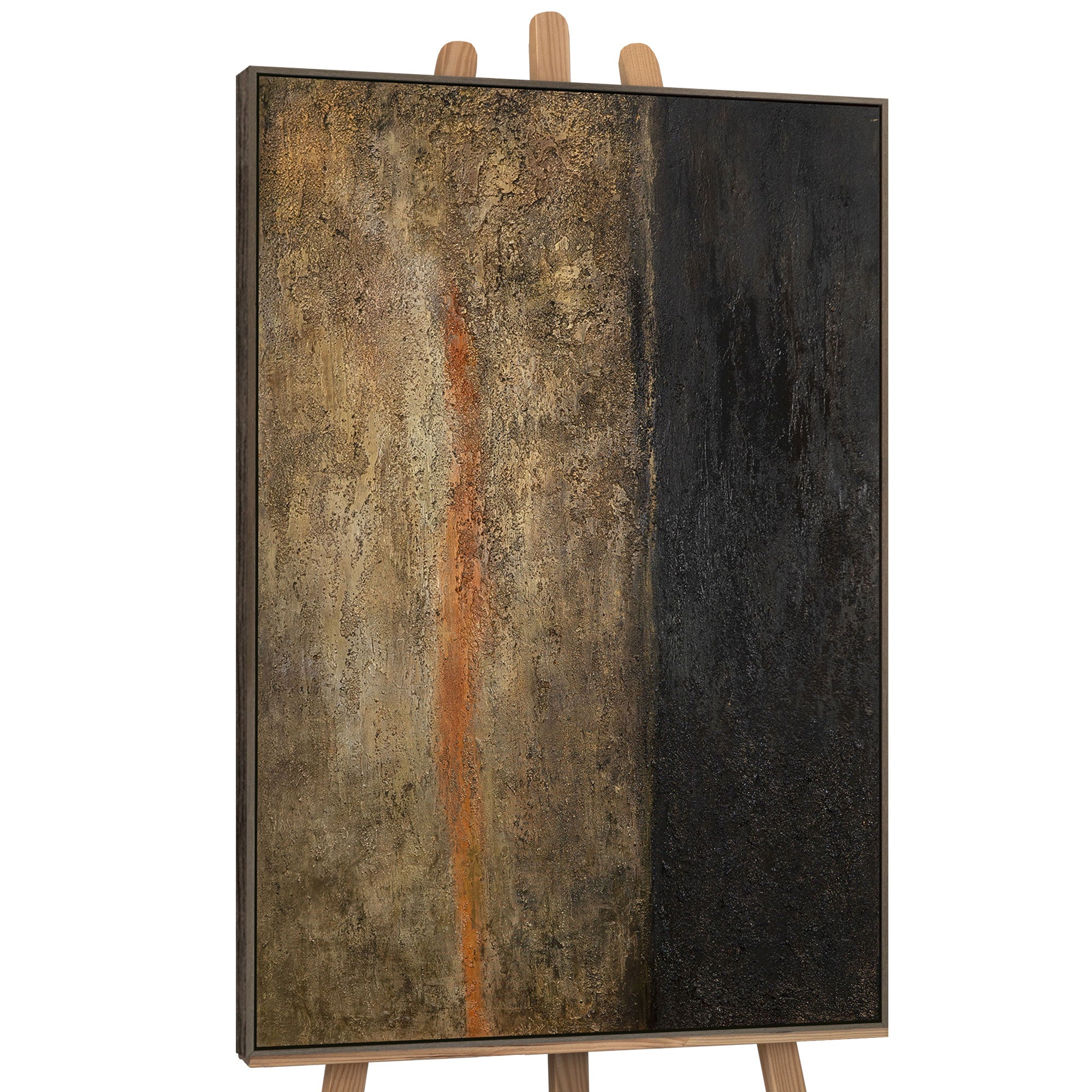 Lienzo enmarcado "Profundidad del tiempo" – Pintura acrílica abstracta en oro y negro