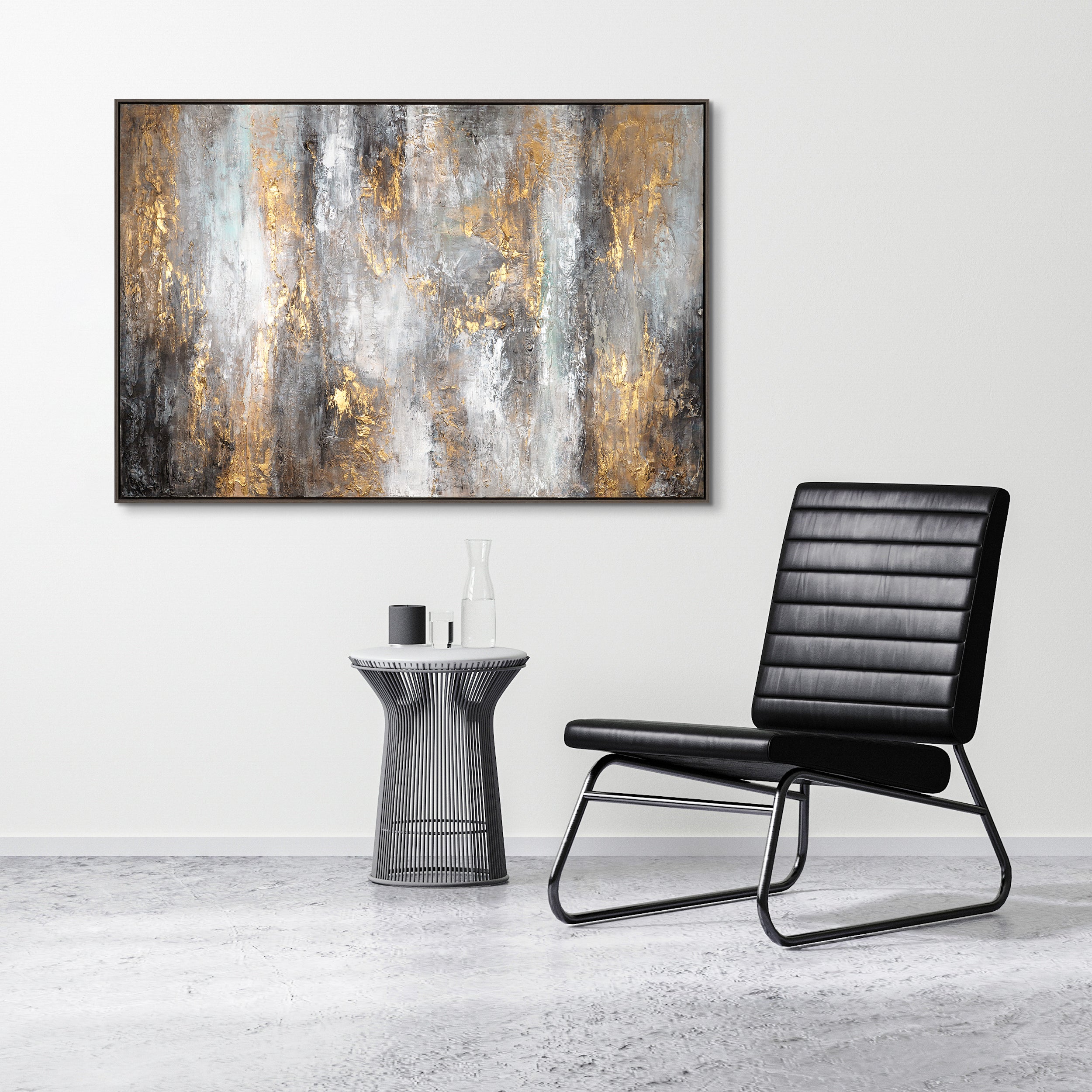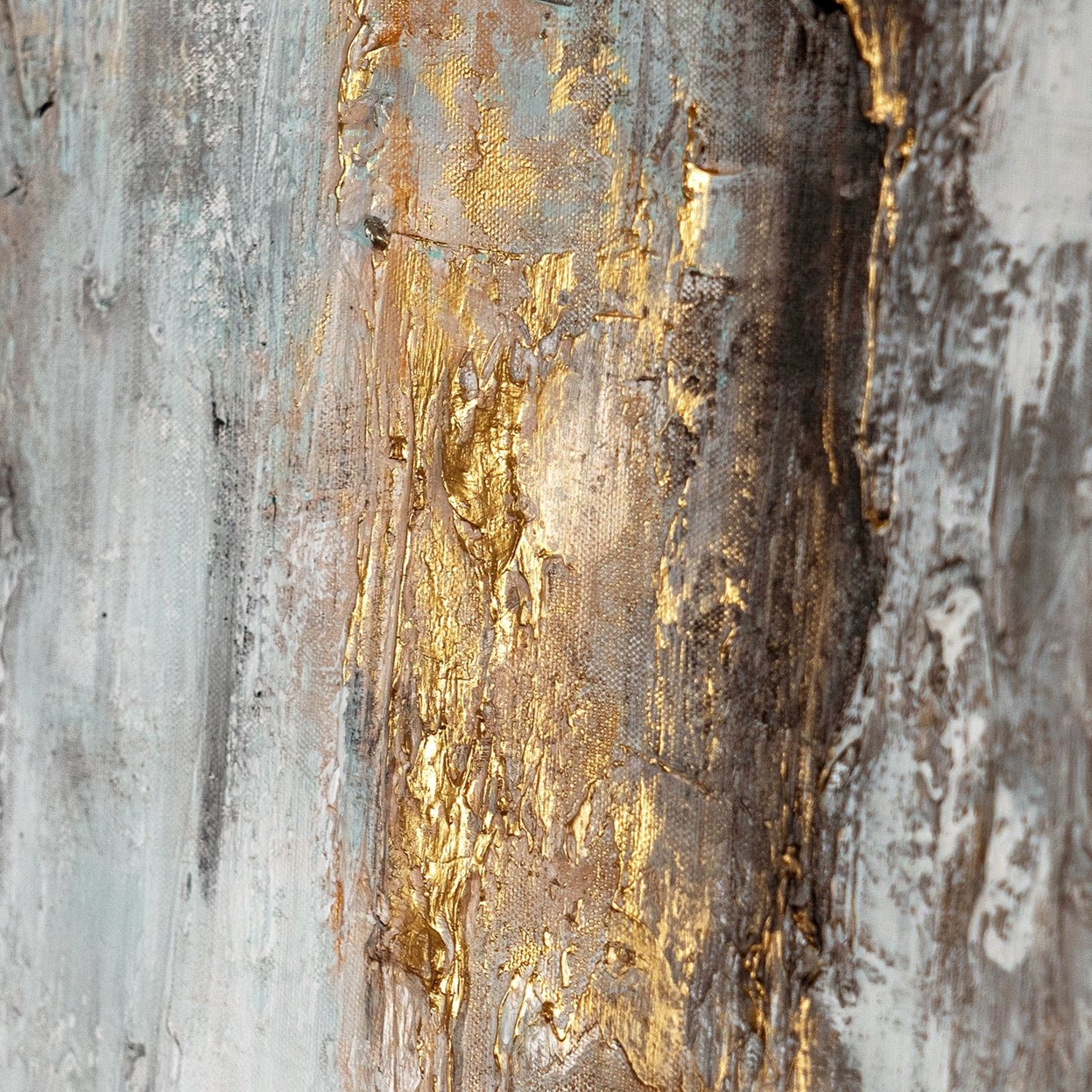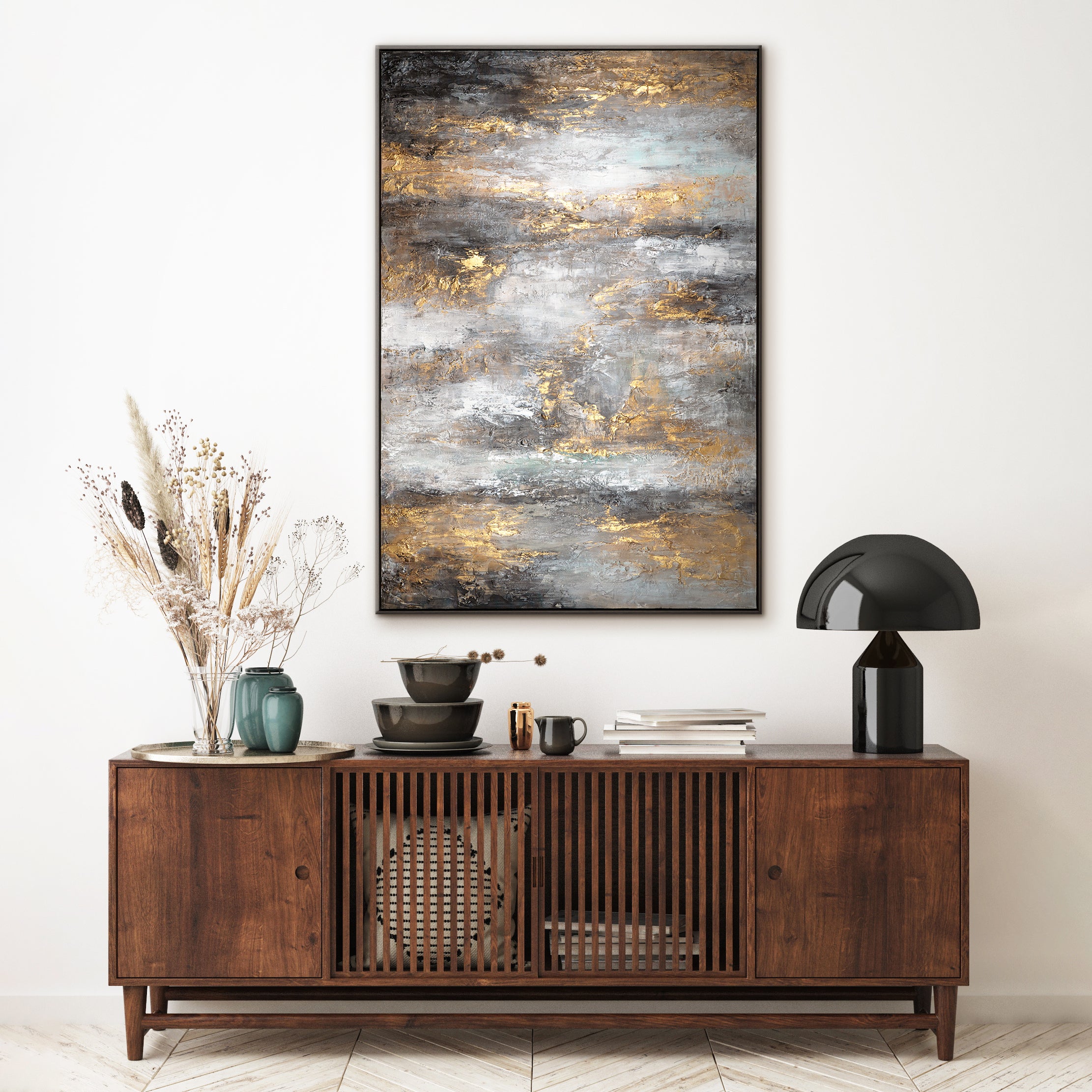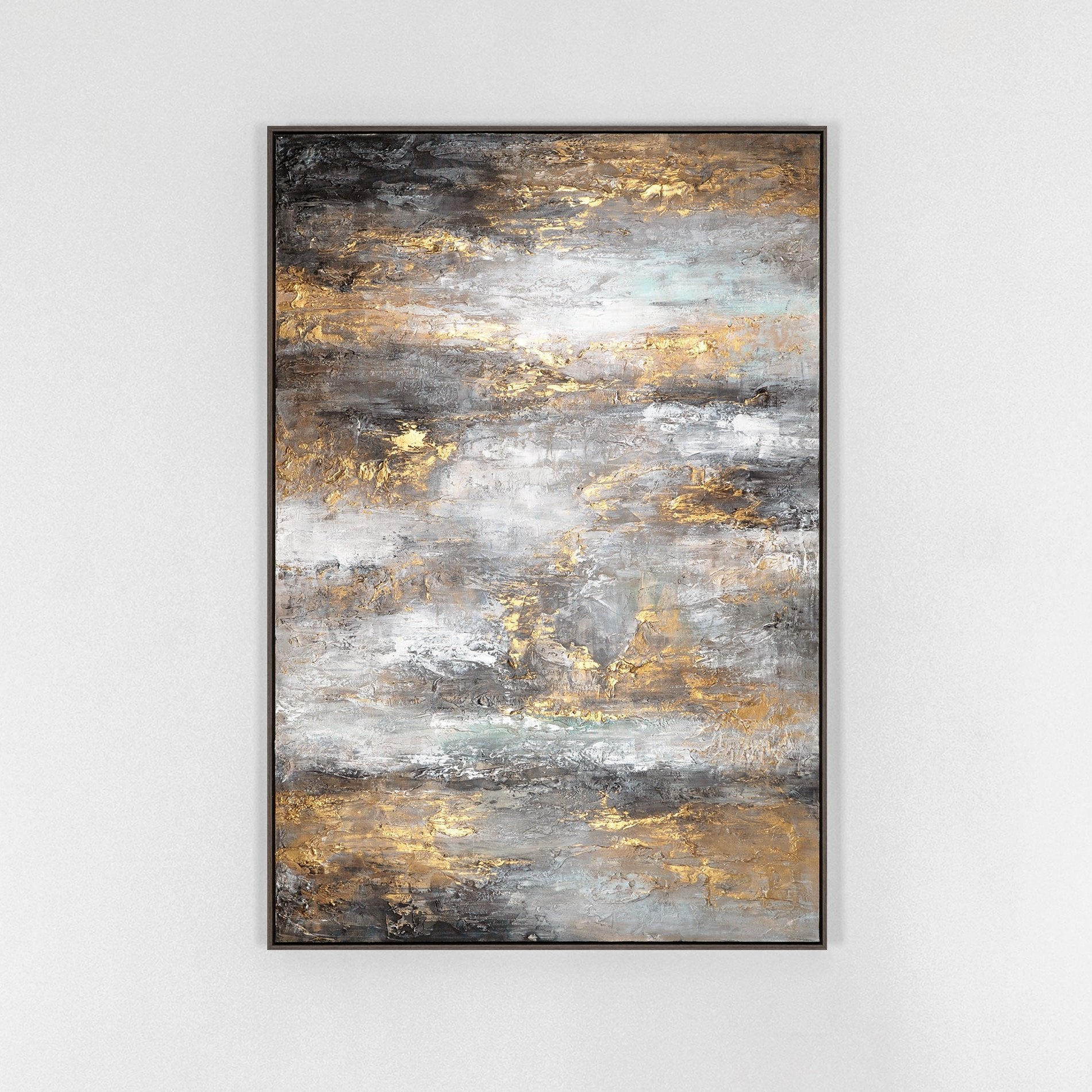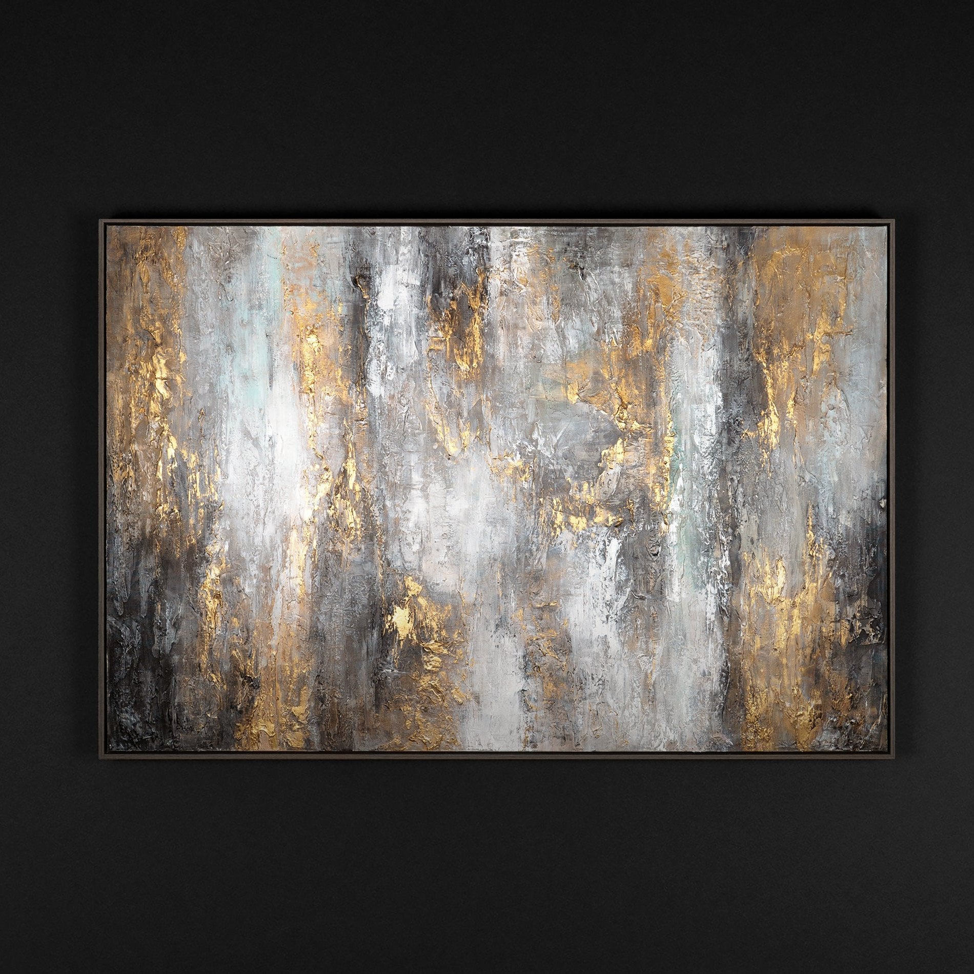 "Profundidades Místicas" captura la insondable belleza del arte abstracto, fusionada con el brillo del oro y la plata en un generoso lienzo.