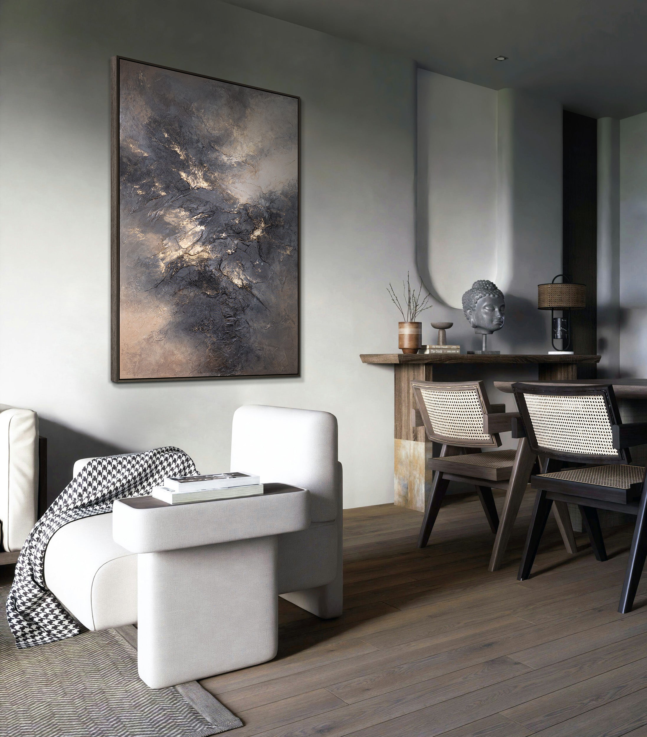Esta pintura abstracta se adapta perfectamente a estilos de decoración modernos, elegantes y minimalistas. Aporta una atmósfera expresiva al salón, dormitorio u oficina, convirtiéndose en el punto central de tu diseño de paredes.