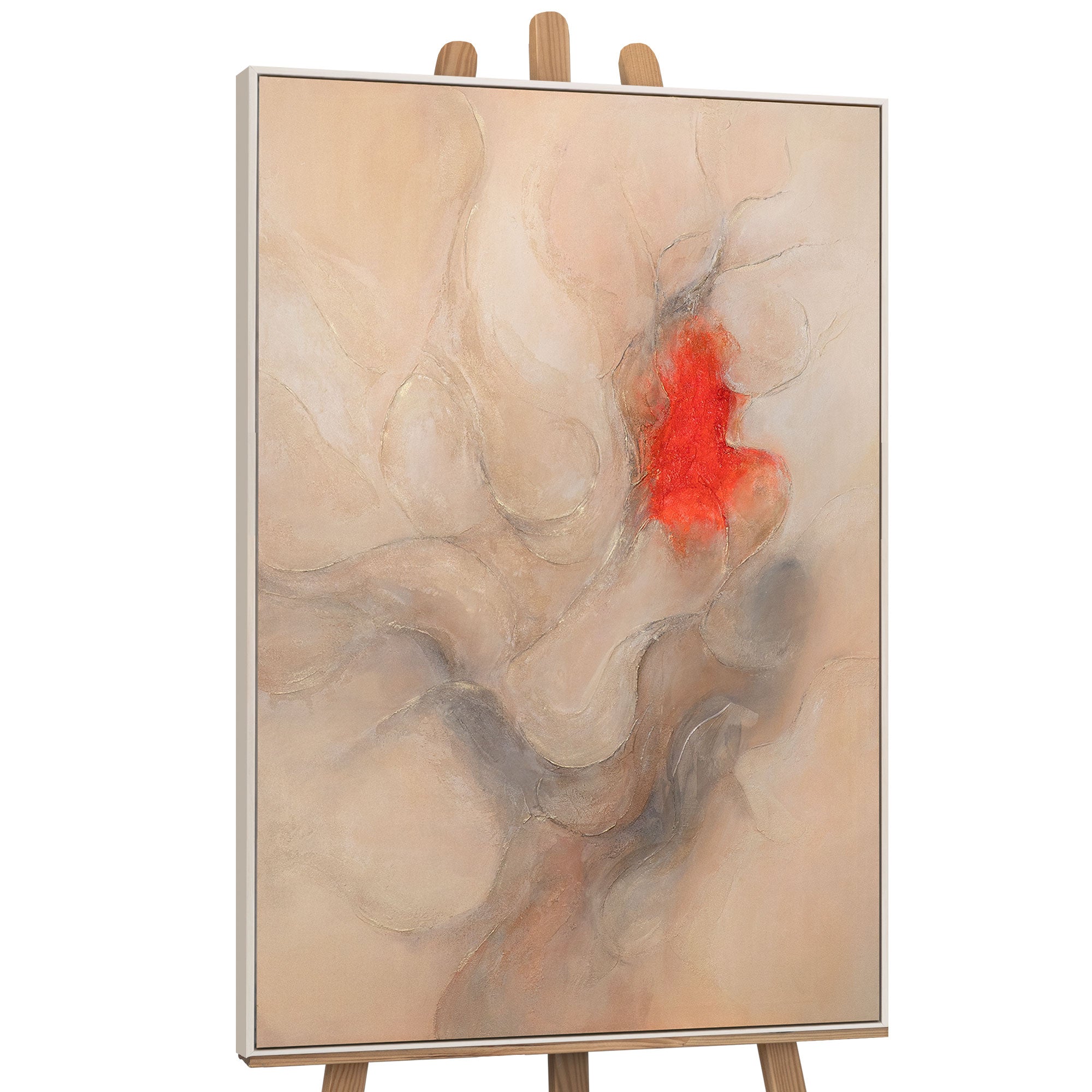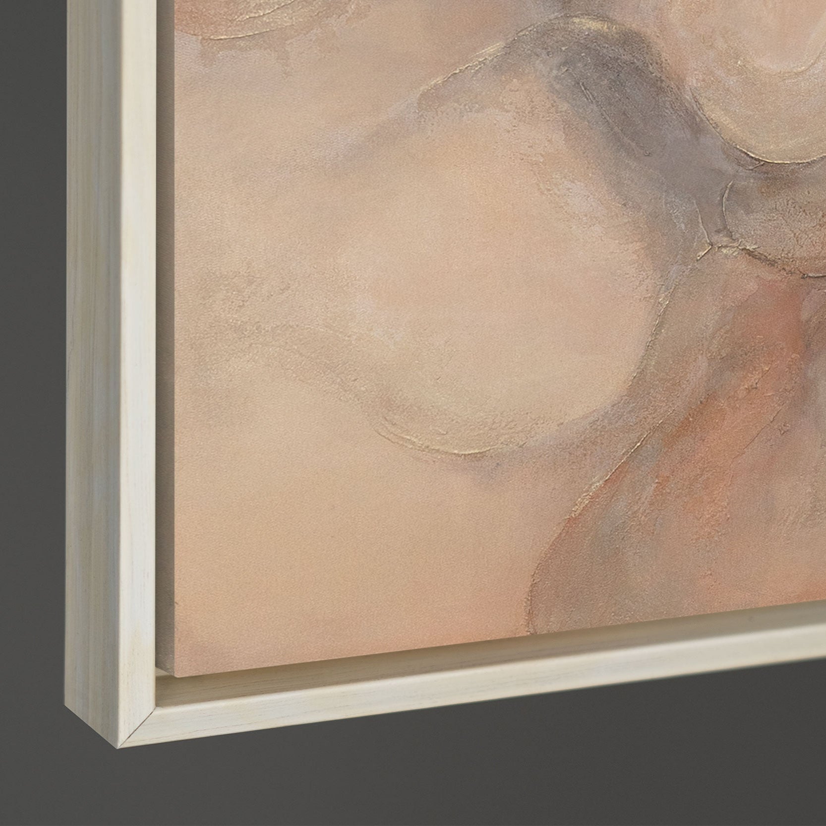 La pintura acrílica “Límites de la Ilusión” juega con estructuras claras y transiciones suaves. Las formas rectangulares ascienden como escalones, mientras que los suaves tonos beige y marrón se funden en amplias áreas. La composición transmite la sensación de un paisaje urbano que se pierde en la distancia, una mezcla de arquitectura e ilusión.