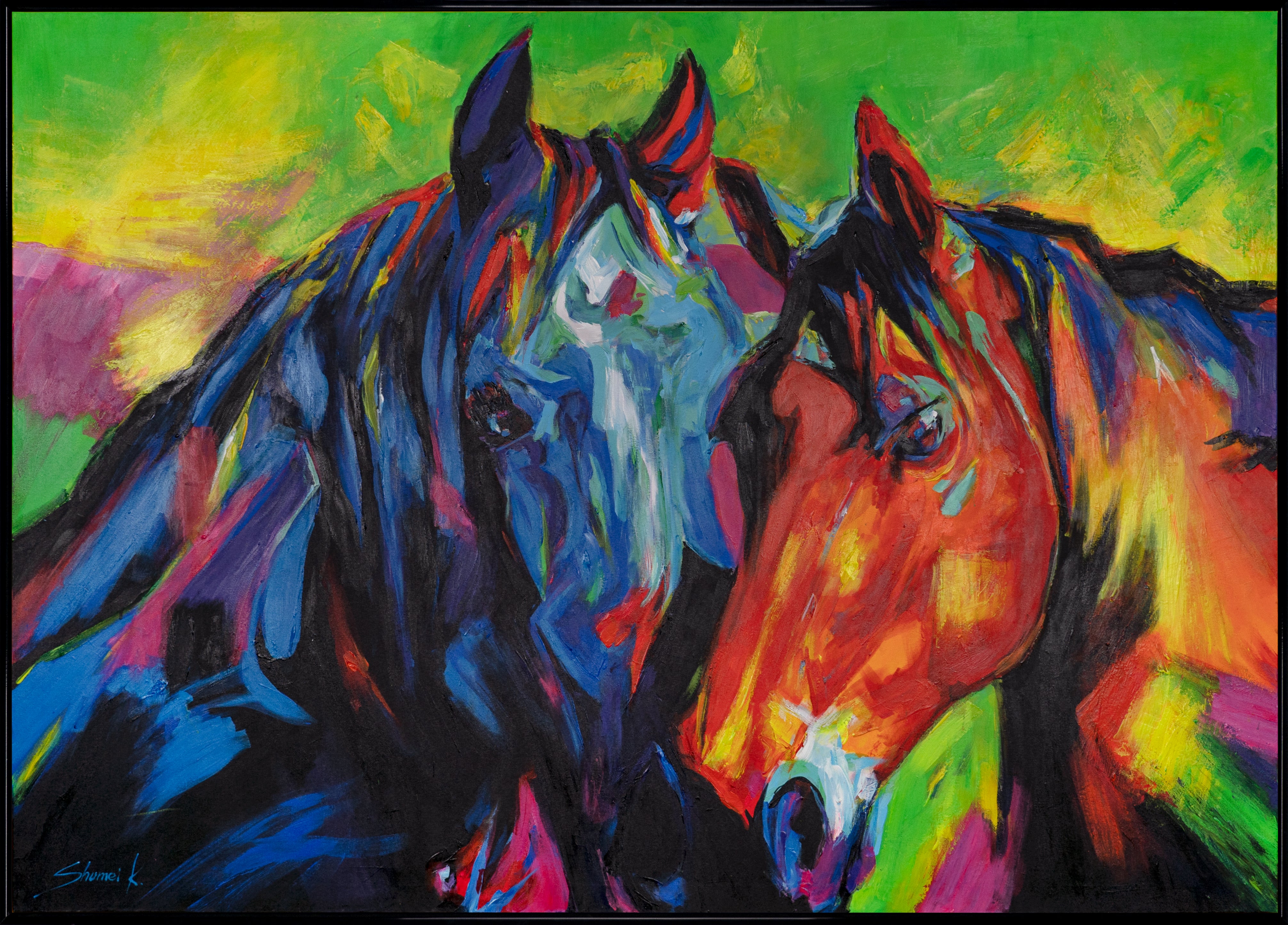 Gemälde handgemalt Acrylmalerei für das Wohnzimmer mit Rahmen "Vielfarbige Mähnen"