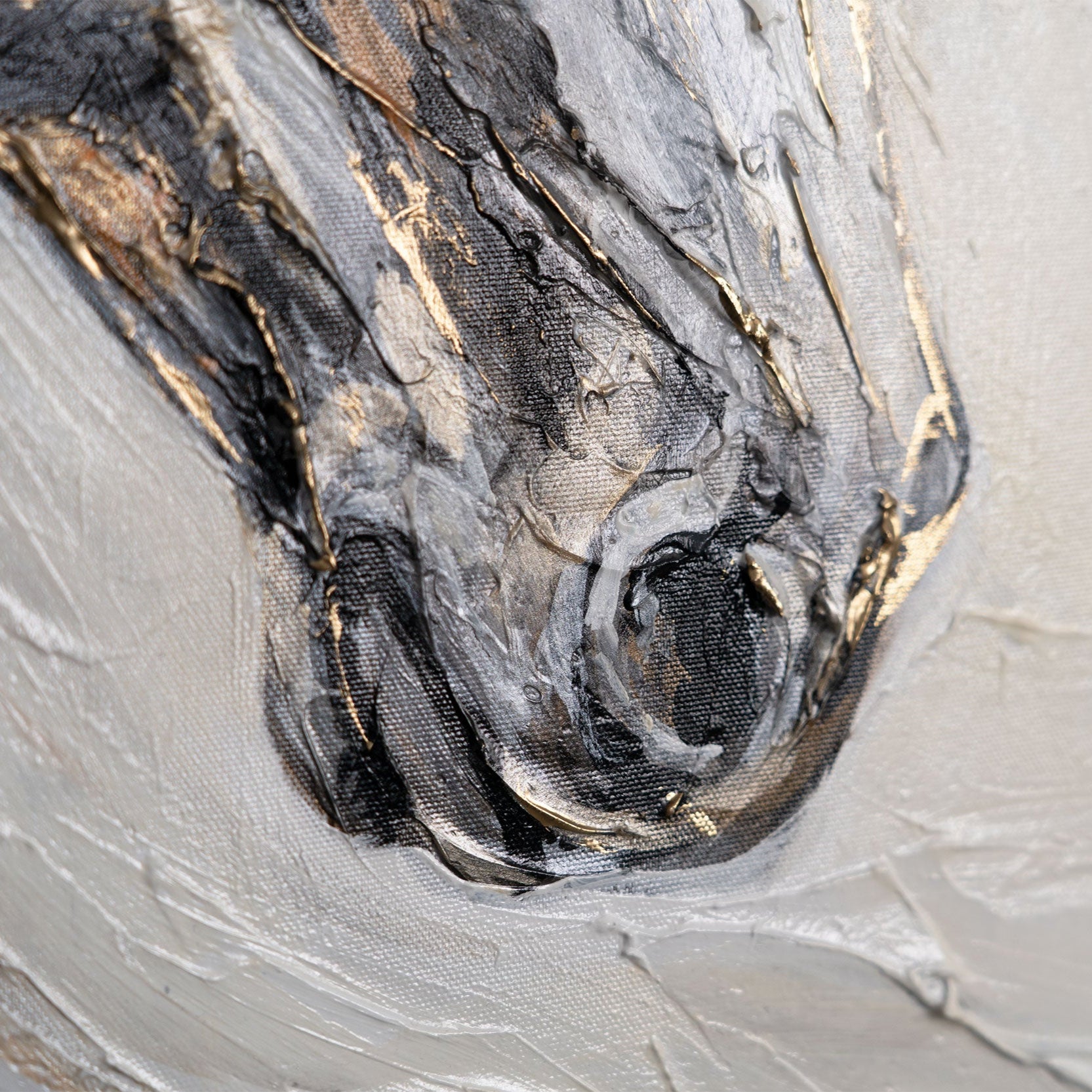 • Acrylbild Pferde auf Staffelei – modernes Pferdemotiv in Grau-Gold