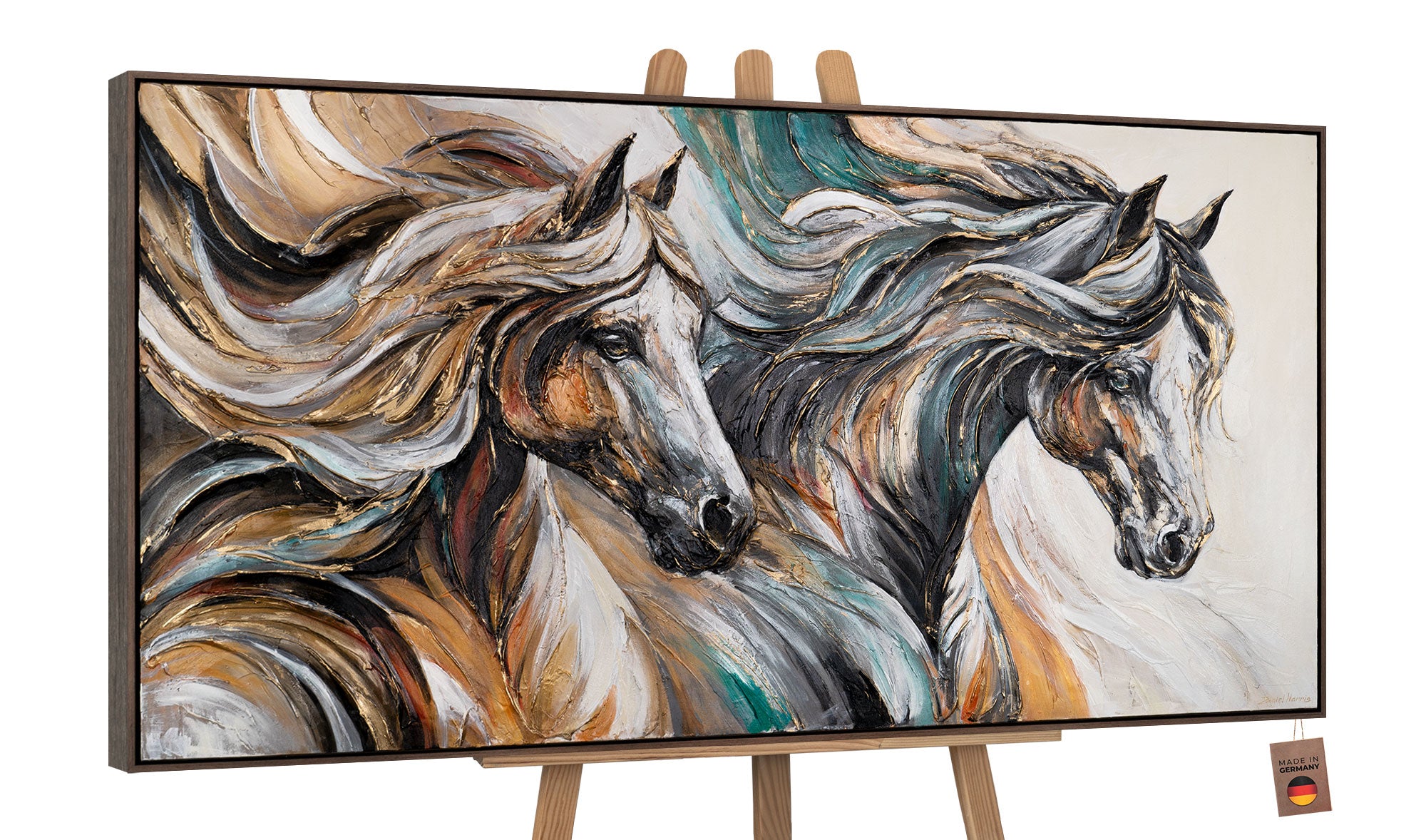 Handgemaltes Acrylbild Mit Pferden Auf Leinwand – Abstrakte Wanddeko "Bewegungsenergie"