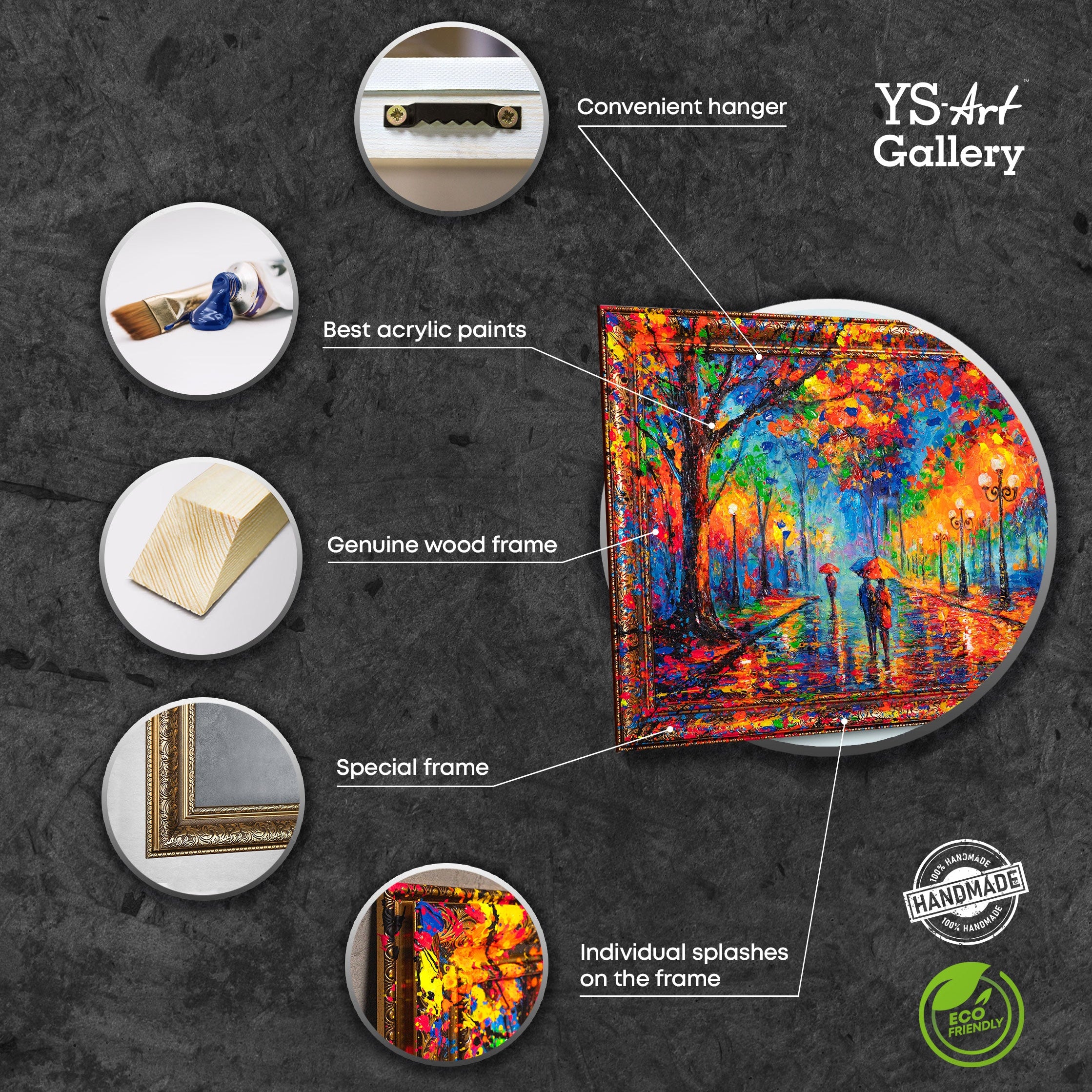 • Farbenfrohes Gemälde mit Rahmen „Abendspaziergang“ – Handgemalte Wandbilder für Wohnzimmer