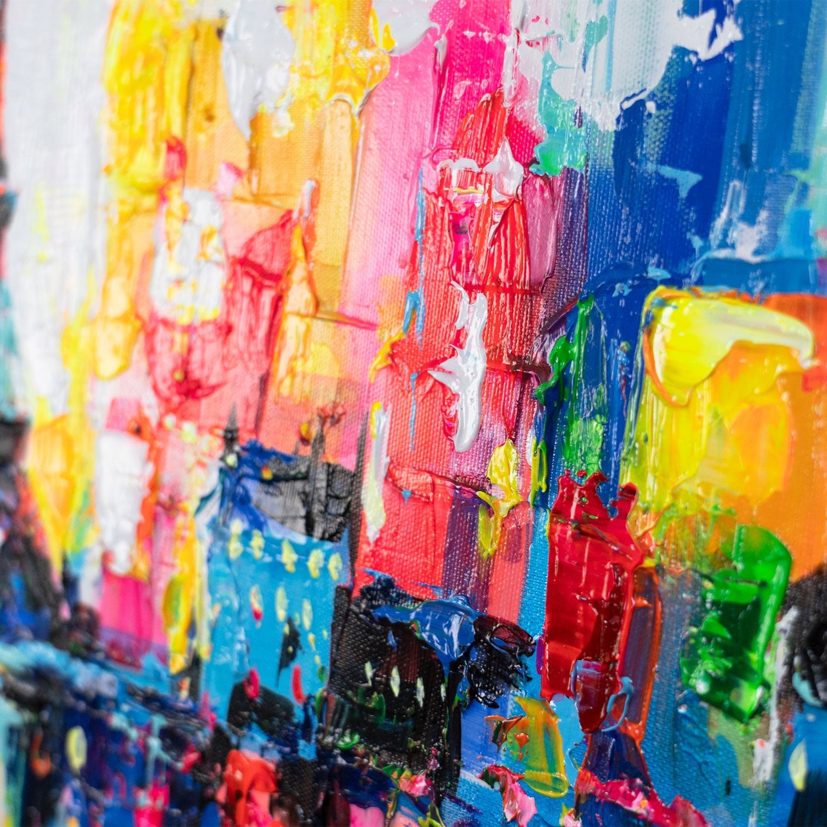 • Detail Acrylbild mit bunten Hochhäusern und Eiffelturm