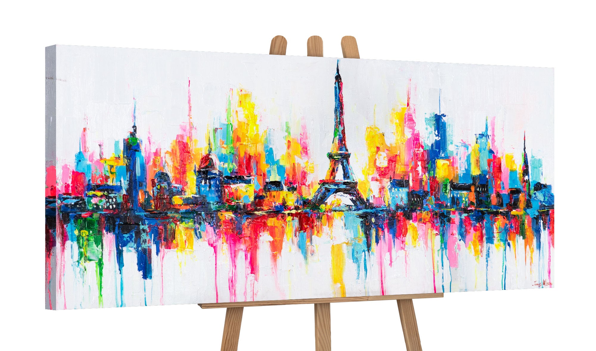Abstrakte Acrylbilder auf Leinwand – "Pariser Inspiration" farbenfrohes Wandbild 115x50cm