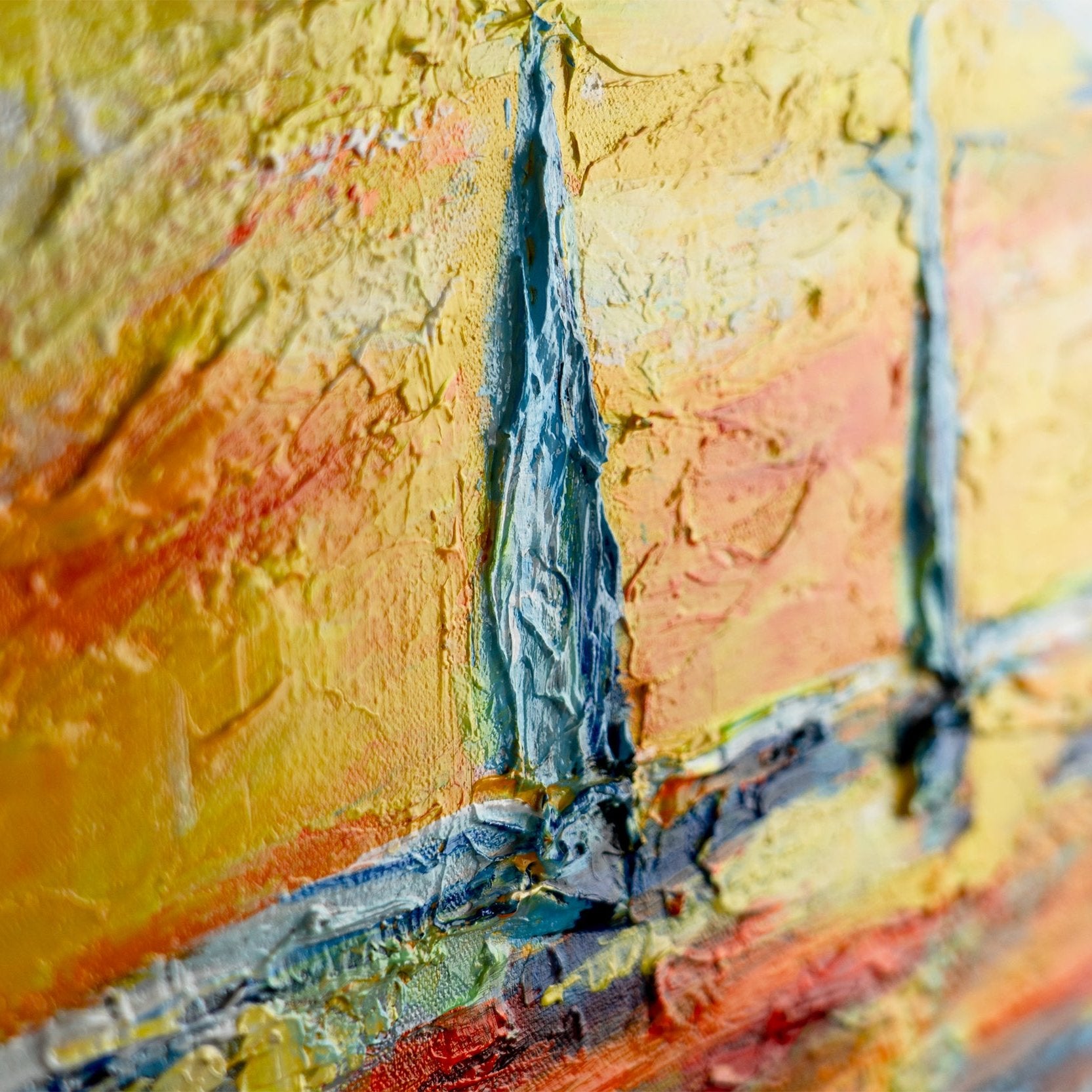 • handgemaltes Leinwandbild Meer mit gelben und blauen Farbtönen