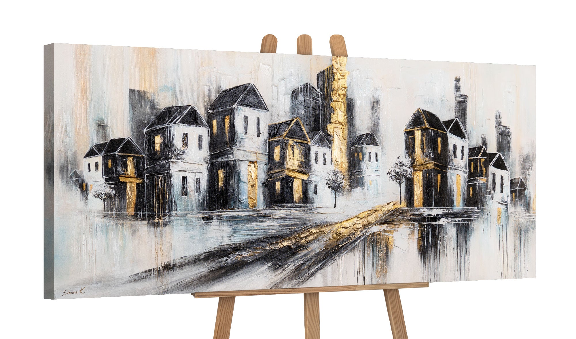 • Abstrakte Handgemaltes Acrylbild "Goldene Stadt" 115x50cm