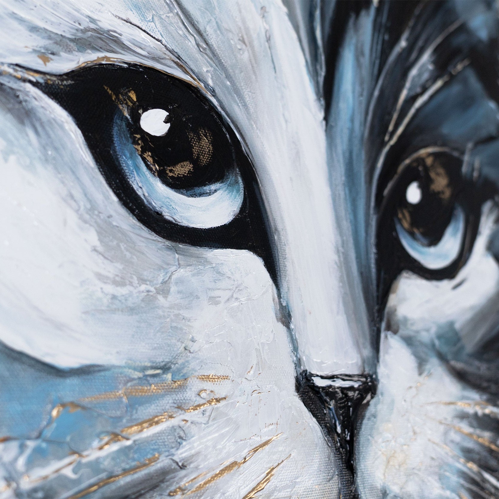 • Close‑up Acrylmalerei Katzenportrait mit Goldakzent