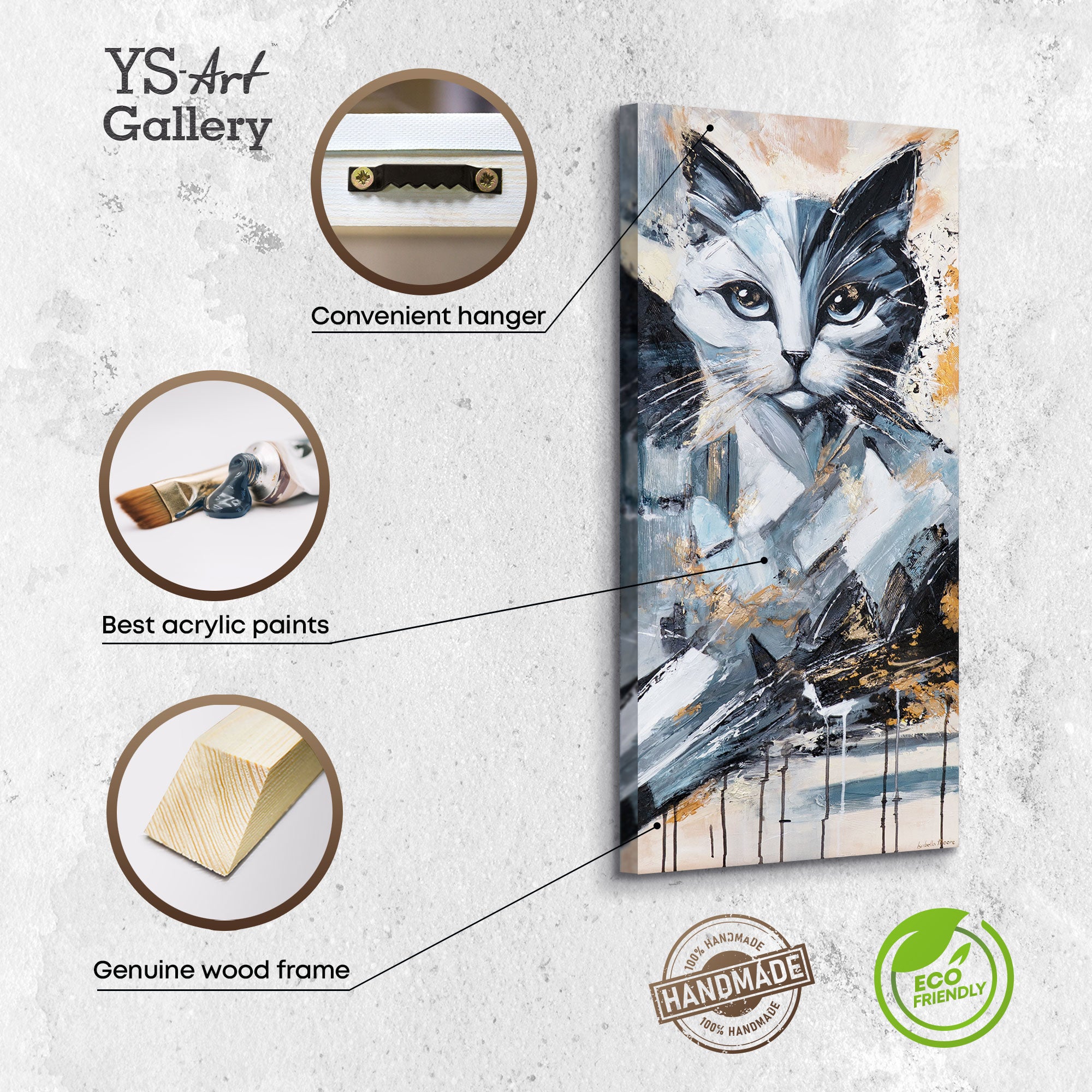 • Infografik Acrylbild Katzenportrait mit Wandaufhänger