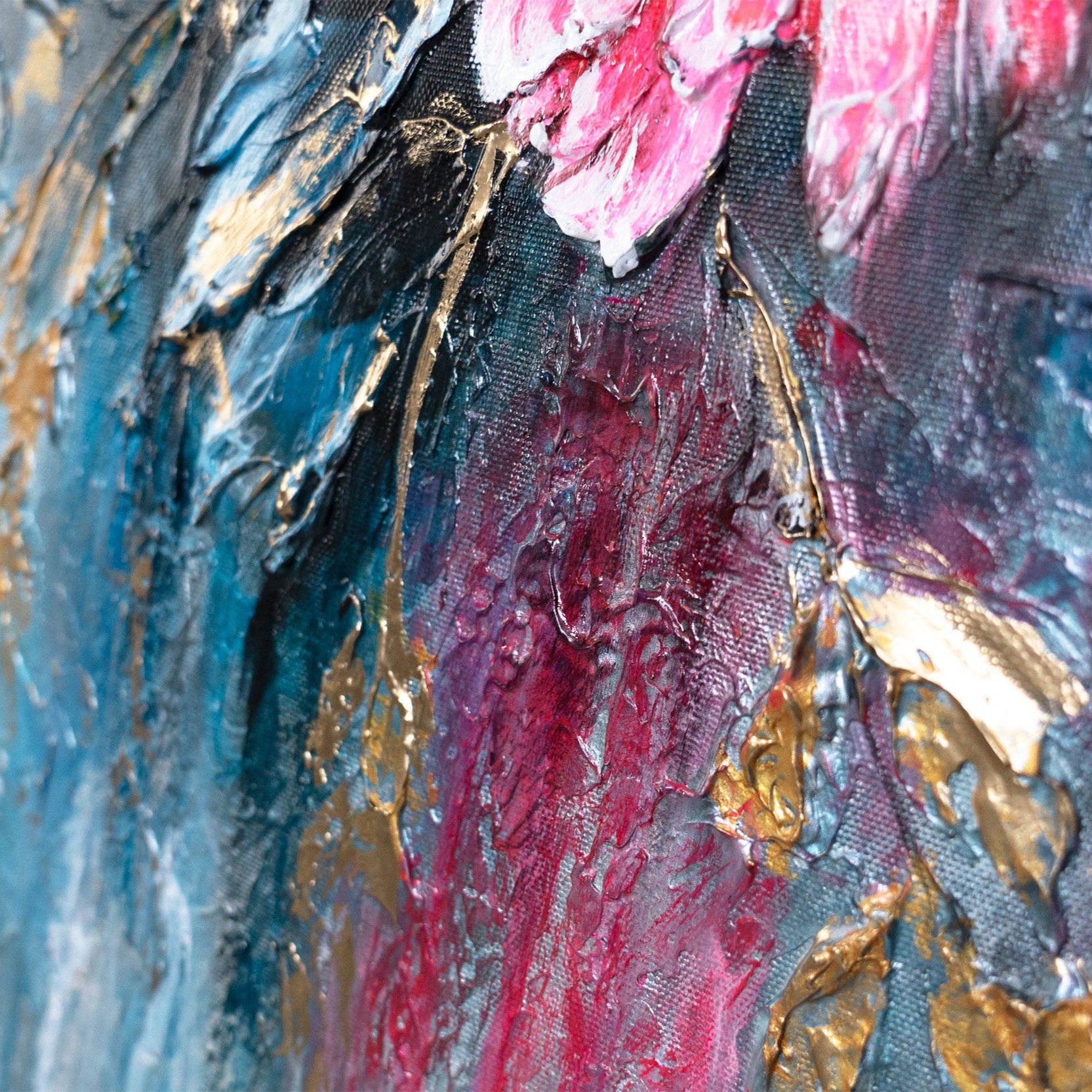 • Struktureffekt auf Acrylbild – florale Wandkunst mit Gold