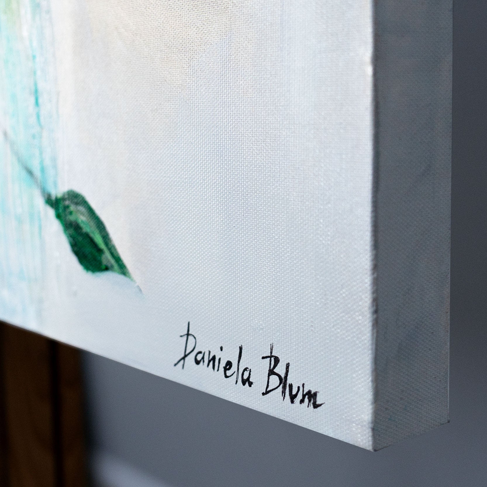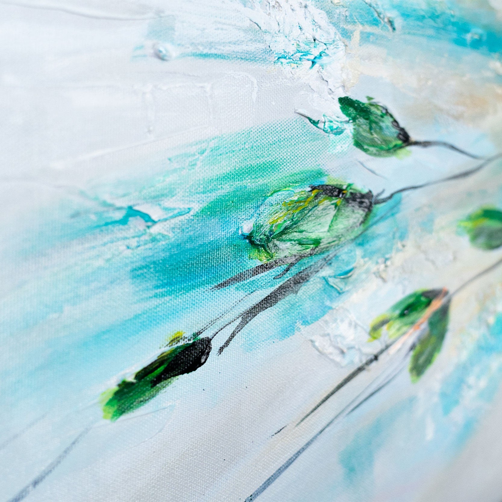 Dieses handgemalte Acrylbild wurde auf hochwertiger Leinwand mit strukturierter Oberfläche angefertigt und eignet sich perfekt als Wanddeko für Wohnzimmer, Flur oder Büro. Die Kombination aus abstrakter Technik und floraler Motivauswahl macht dieses Werk zu einem echten Blickfang.