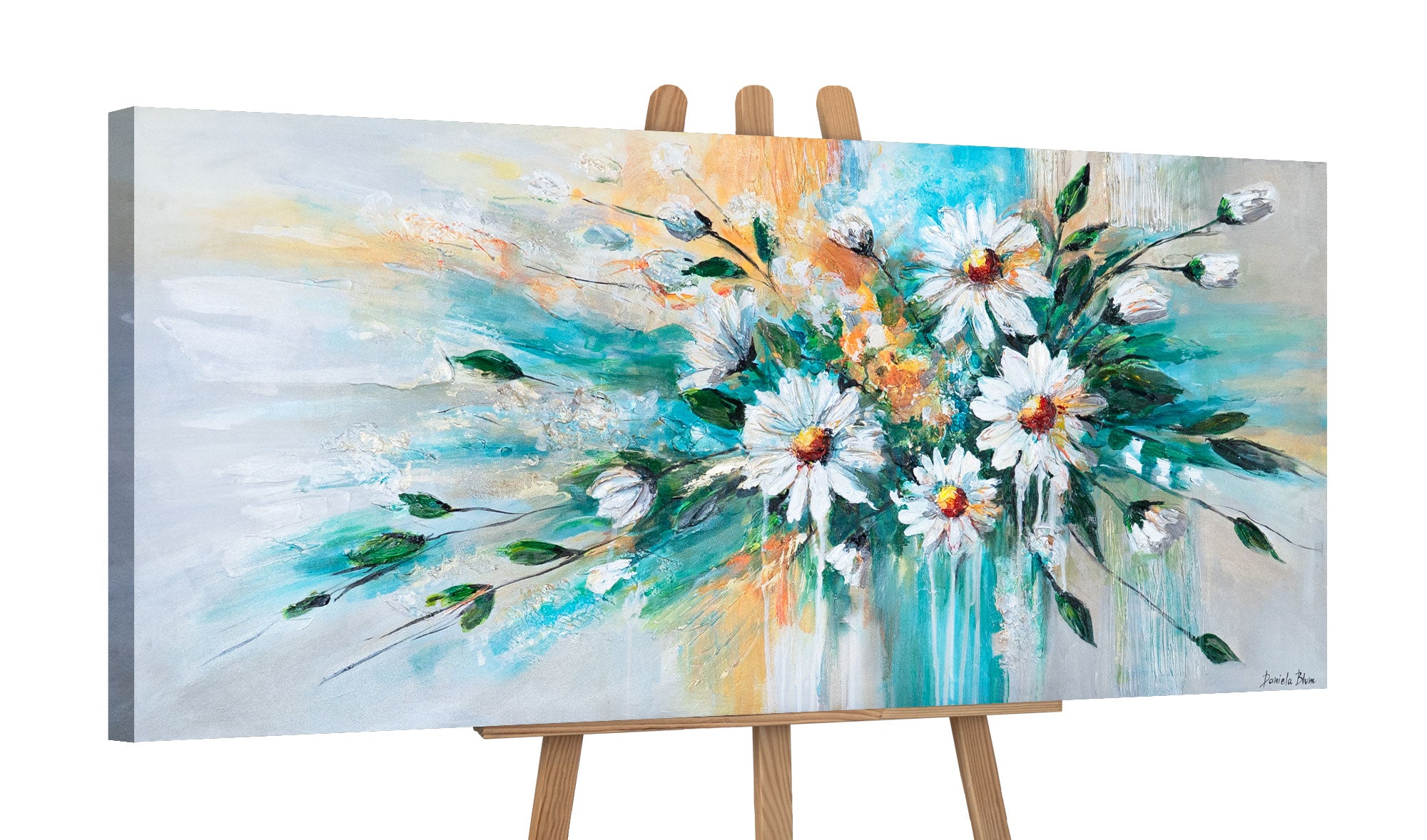 Abstraktes Blumenbild auf Leinwand – moderne Kunst "Sonnige Gänseblümchen" 115x50cm