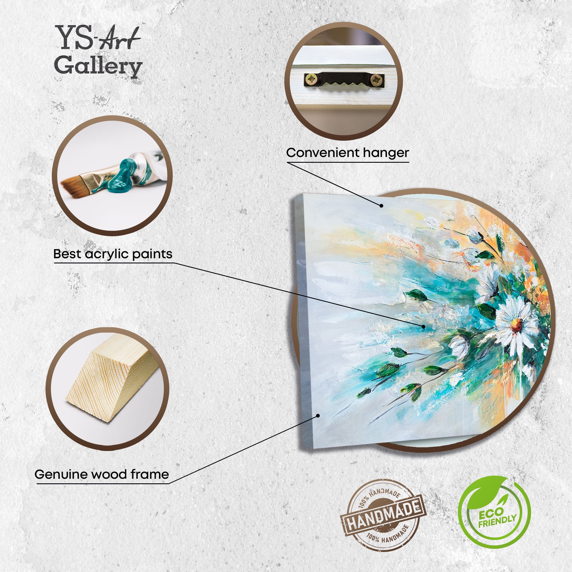 Die Acrylmalerei „Sonnige Gänseblümchen“ bringt frische, helle Akzente in Ihre Wohnräume. Zarte weiße Blüten, kombiniert mit Türkis, Grün und sanftem Orange, ergeben eine harmonische florale Komposition, die Leichtigkeit und Natürlichkeit ausstrahlt.