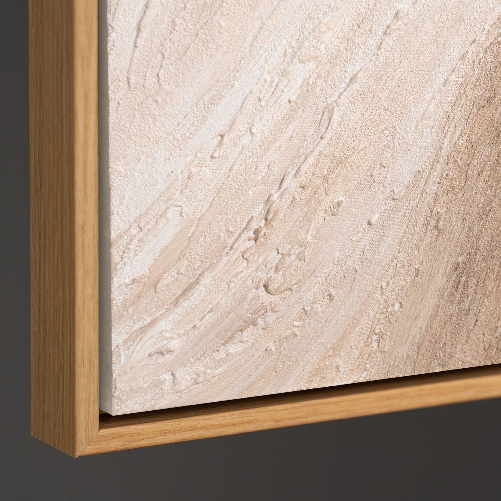 Das handgemalte Leinwandbild wird im Rahmen präsentiert und eignet sich ideal als moderne Wanddekoration für Wohnzimmer, Schlafzimmer oder ruhige Arbeitsbereiche. Die warme Farbigkeit wirkt ausgleichend und fügt sich harmonisch in natürliche und minimalistische Interieurs ein.