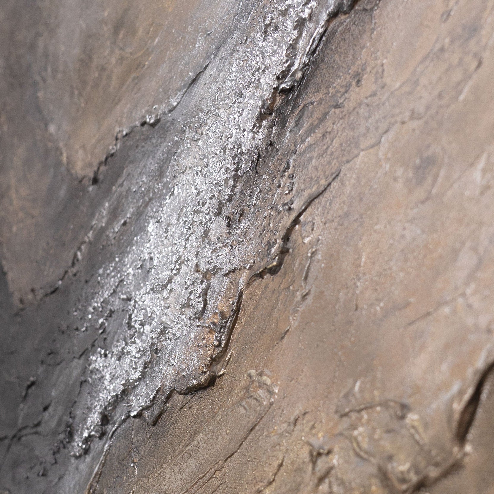 „Dunkelheit und Morgendämmerung“ ist ein ausdrucksstarkes abstraktes Acrylgemälde, geprägt von tiefen Grau-, Braun- und warmen Erdtönen. Die vielschichtige, reliefartige Struktur erinnert an natürliche Gesteinsformationen und Übergänge zwischen Schatten und Licht. Feine Kontraste und raue Oberflächen verleihen dem Werk eine kraftvolle, erdige Präsenz und unterstreichen den handgemalten Charakter.