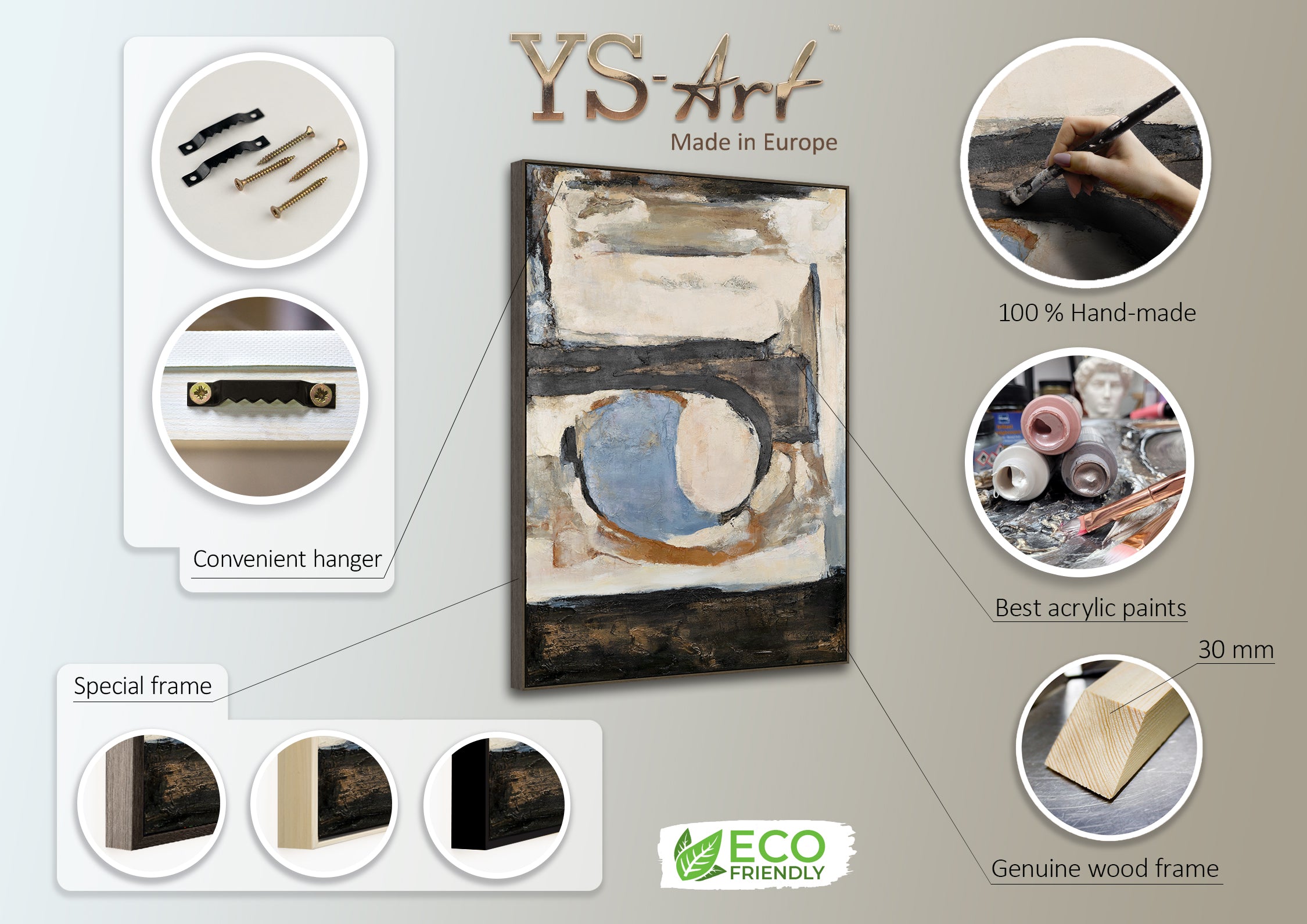 • Abstraktes Gemälde in neutralen Tönen Handgemalte Leinwandkunst mit Rahmen Geometrische Farben