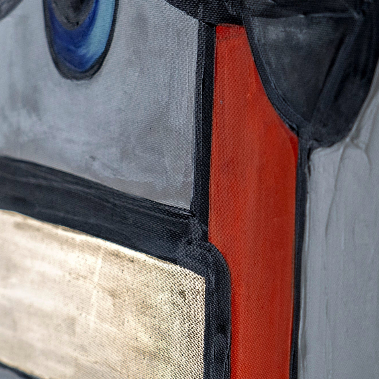 Durch den Einsatz von Gold-, Blau- und Rottönen verleiht dieses Gemälde jedem Raum eine starke visuelle Präsenz. Die hochwertige Verarbeitung auf Leinwand garantiert Langlebigkeit und künstlerische Ausdrucksstärke – perfekt für Wohnräume, Ateliers oder kreative Büros.