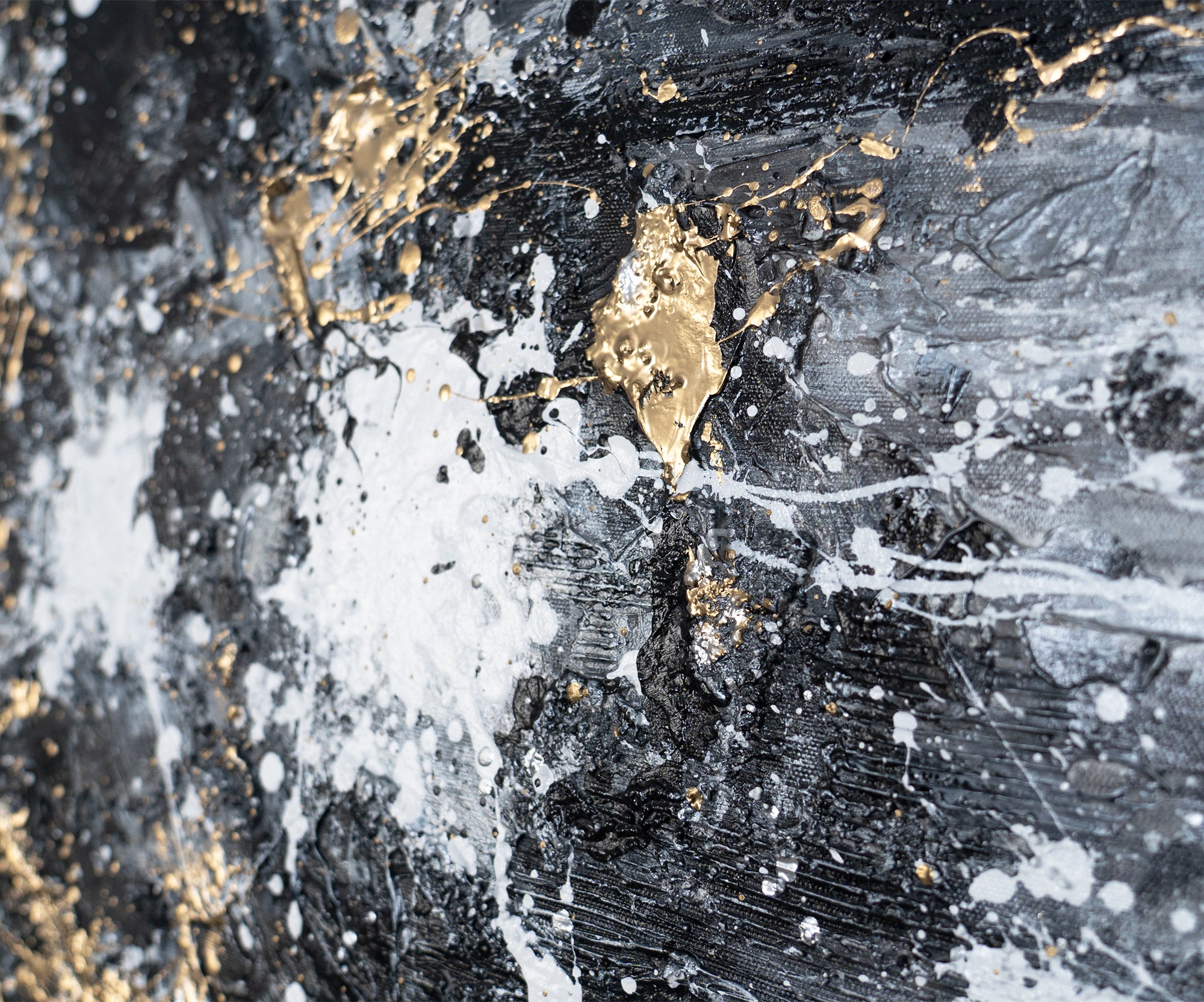 • Farbstruktur Schwarz Gold handgemalte Acrylmalerei Detail