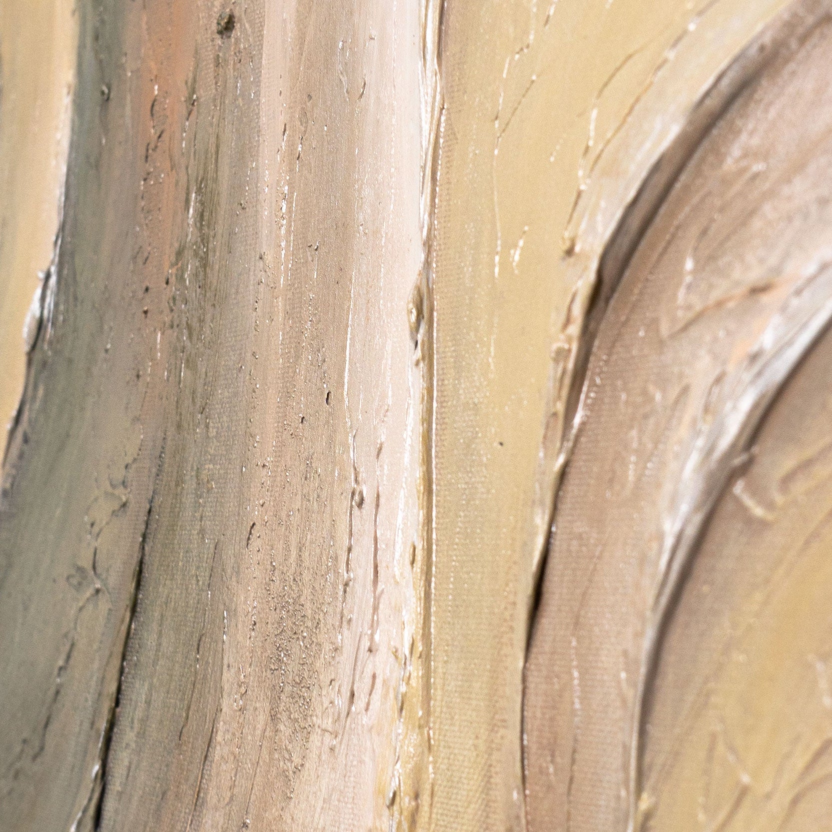 Dieses handgemalte abstrakte Wandbild zeichnet sich durch weich fließende Formen und eine harmonische Naturfarbpalette aus. Sanfte Beige-, Creme- und Grautöne verschmelzen zu einer ruhigen Bewegung, die Tiefe und Leichtigkeit zugleich vermittelt. Die strukturierte Oberfläche verstärkt den plastischen Eindruck und verleiht dem Gemälde eine elegante, hochwertige Wirkung.