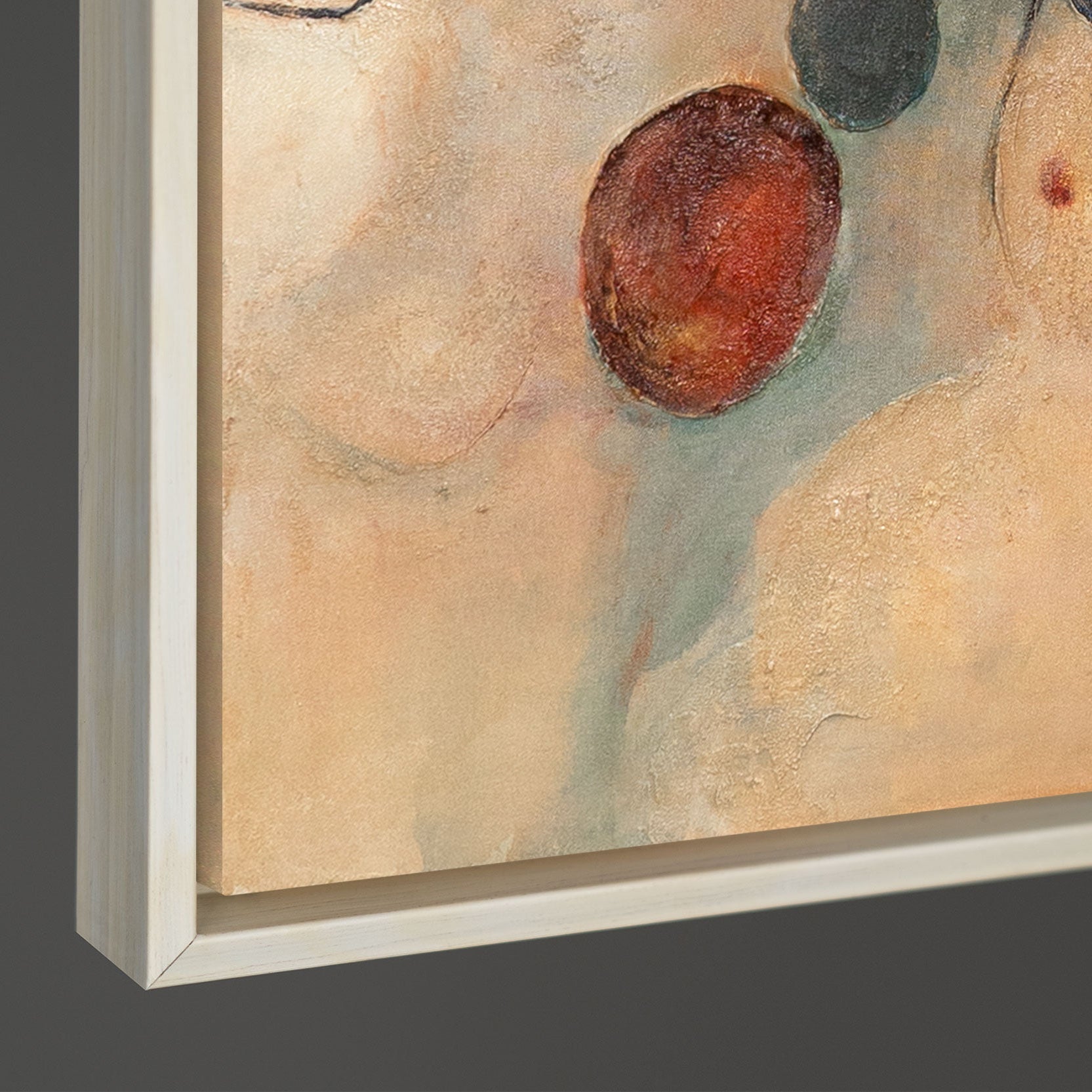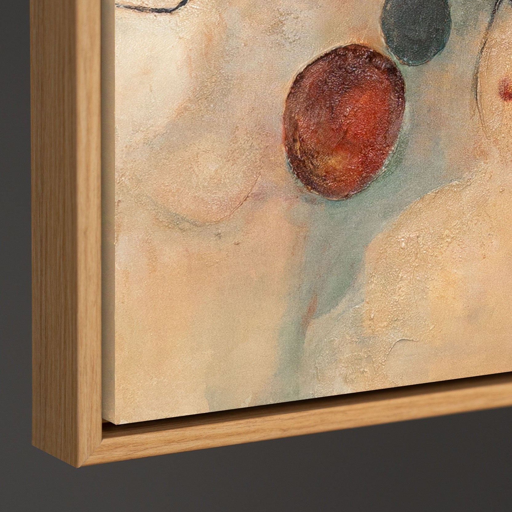 Abstraktes Leinwandbild „Scharlachrote Sternbilder“ in warmen Naturtönen mit Rahmen