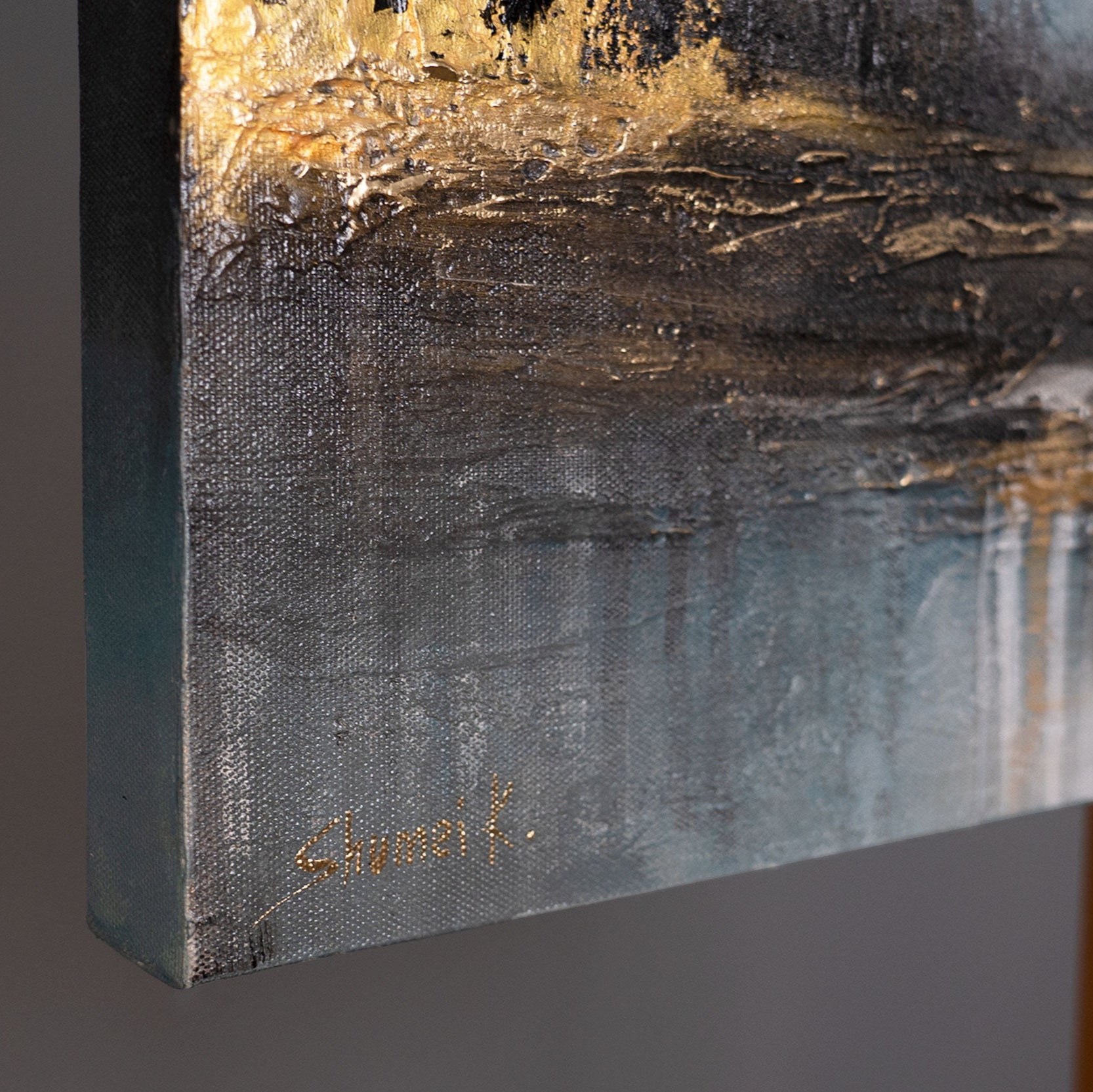 • gemalte bilder landschaft, landschaftsmalerei, wanddeko gold, acrylmalerei