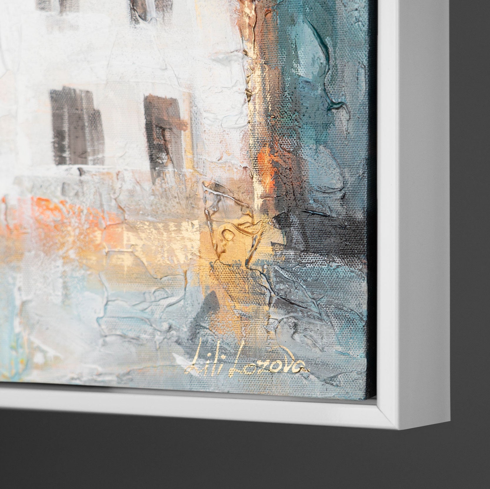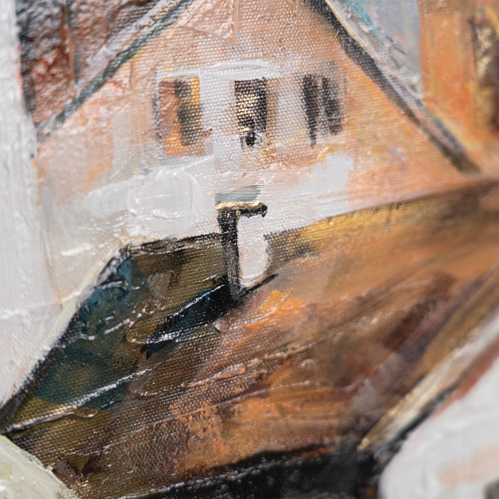 • Nahaufnahme Häuser – Gemälde Bergdorf auf Leinwand